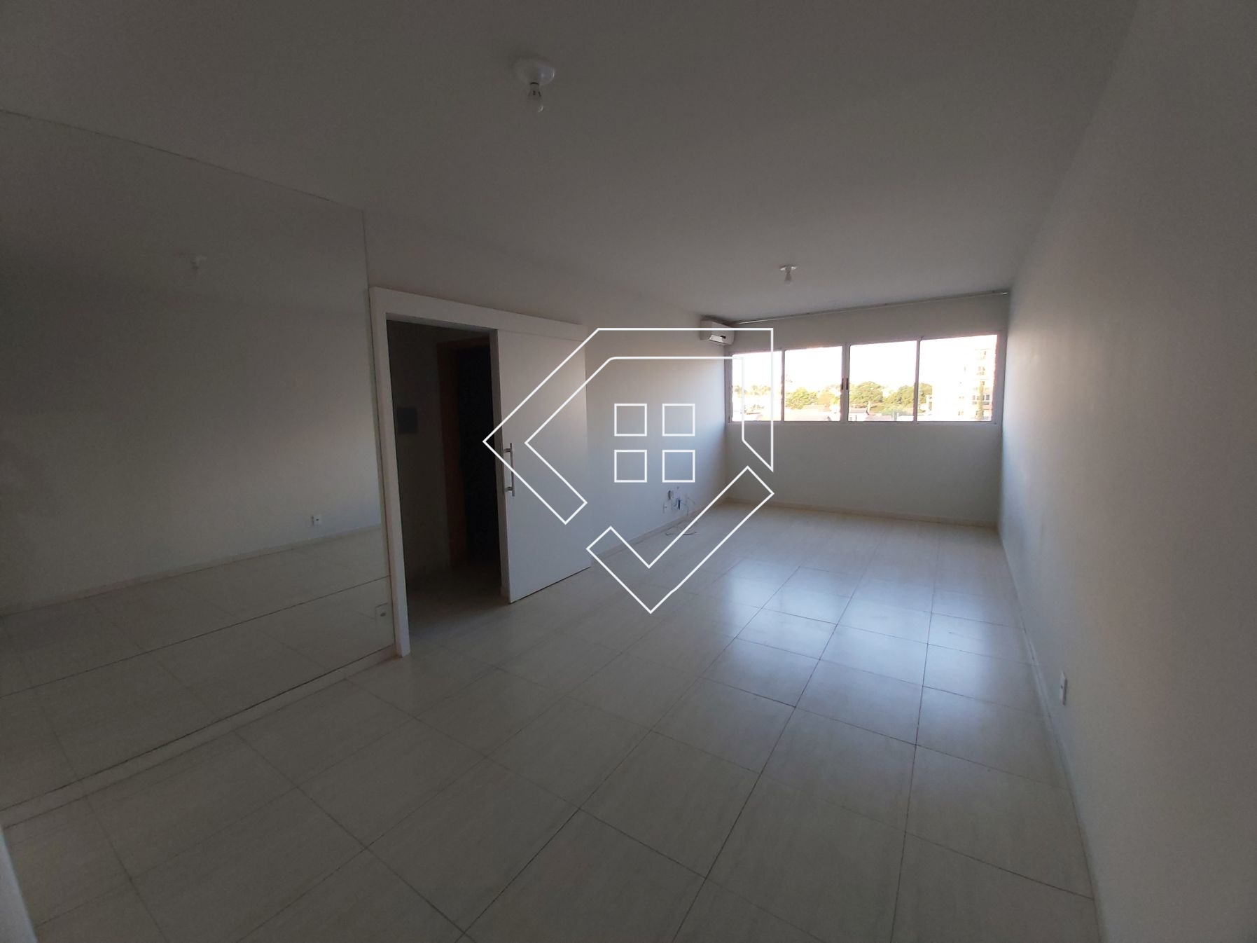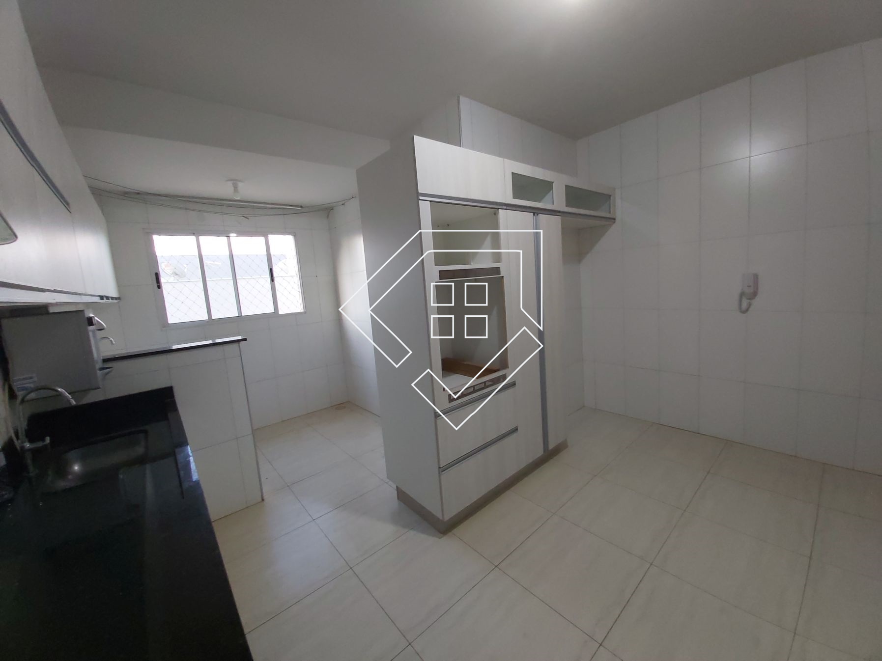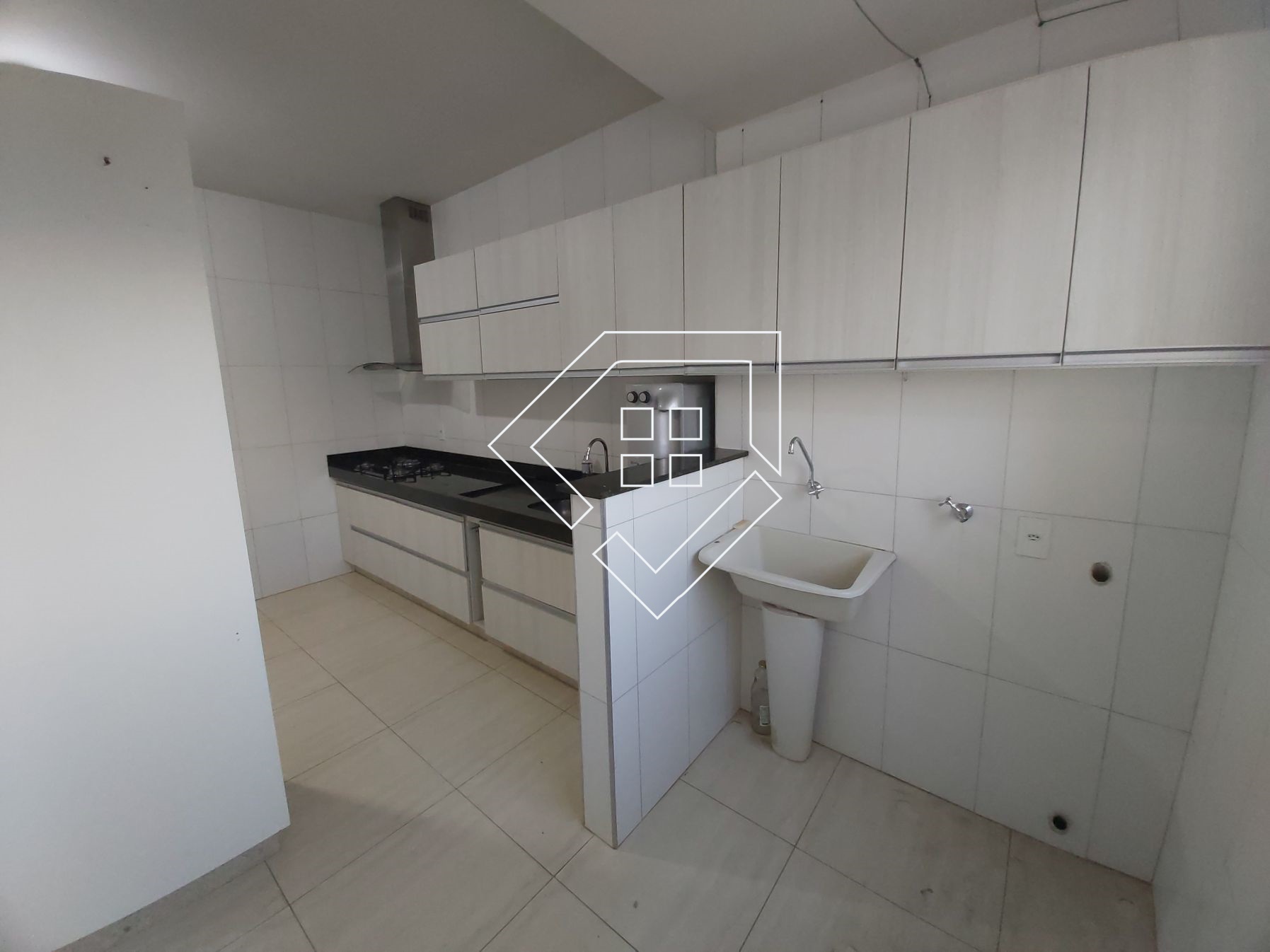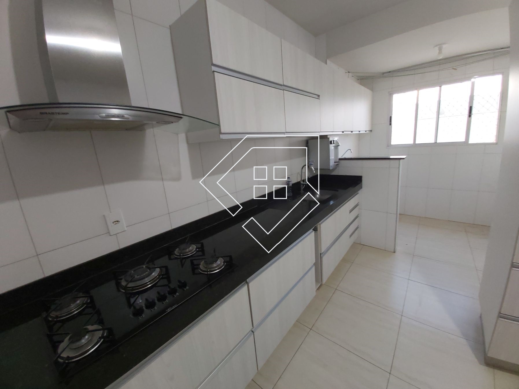 Apartamento para alugar em Mineiros com dois quartos com ar condicionado, ampla sala para dois ambientes, cozinha com armários, fogão e depurador, área de serviço, banheiro social e garagem coberta. Piso com porcelanato, bancadas em granito, esquadrias em alumínio, condomínio de baixo custo e portaria remota.