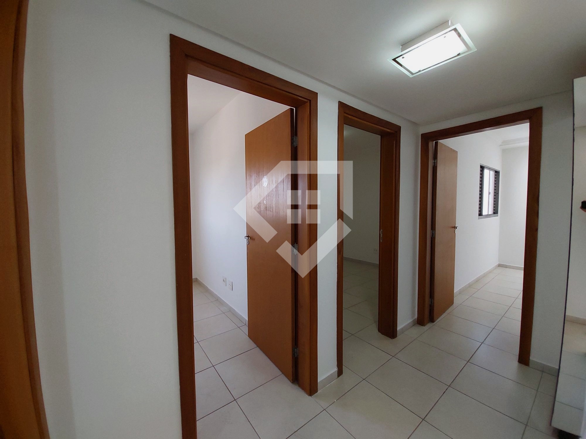 O apartamento está em posição nascente, com vista para o condomínio portal do Cerrado, conta com painel de TV, cristaleira, armários na cozinha, nos banheiros e na área de serviço, guarda roupas embutido na suíte e em um quarto solteiro. Prédio localizado próximo ao fórum e ao lado do Colégio Ágape, conta com lazer completo, piscina, salão de festas e área para churrasco.