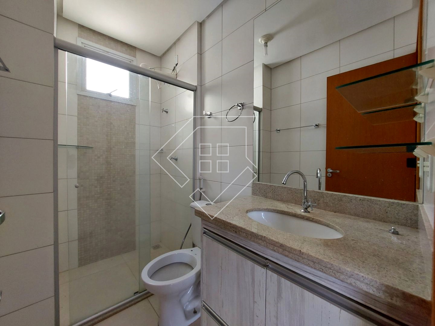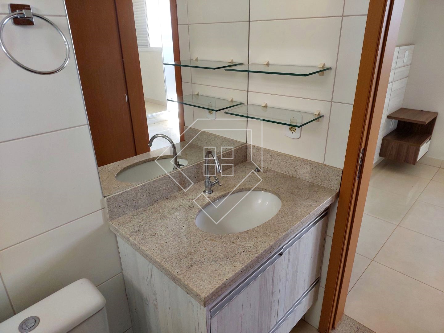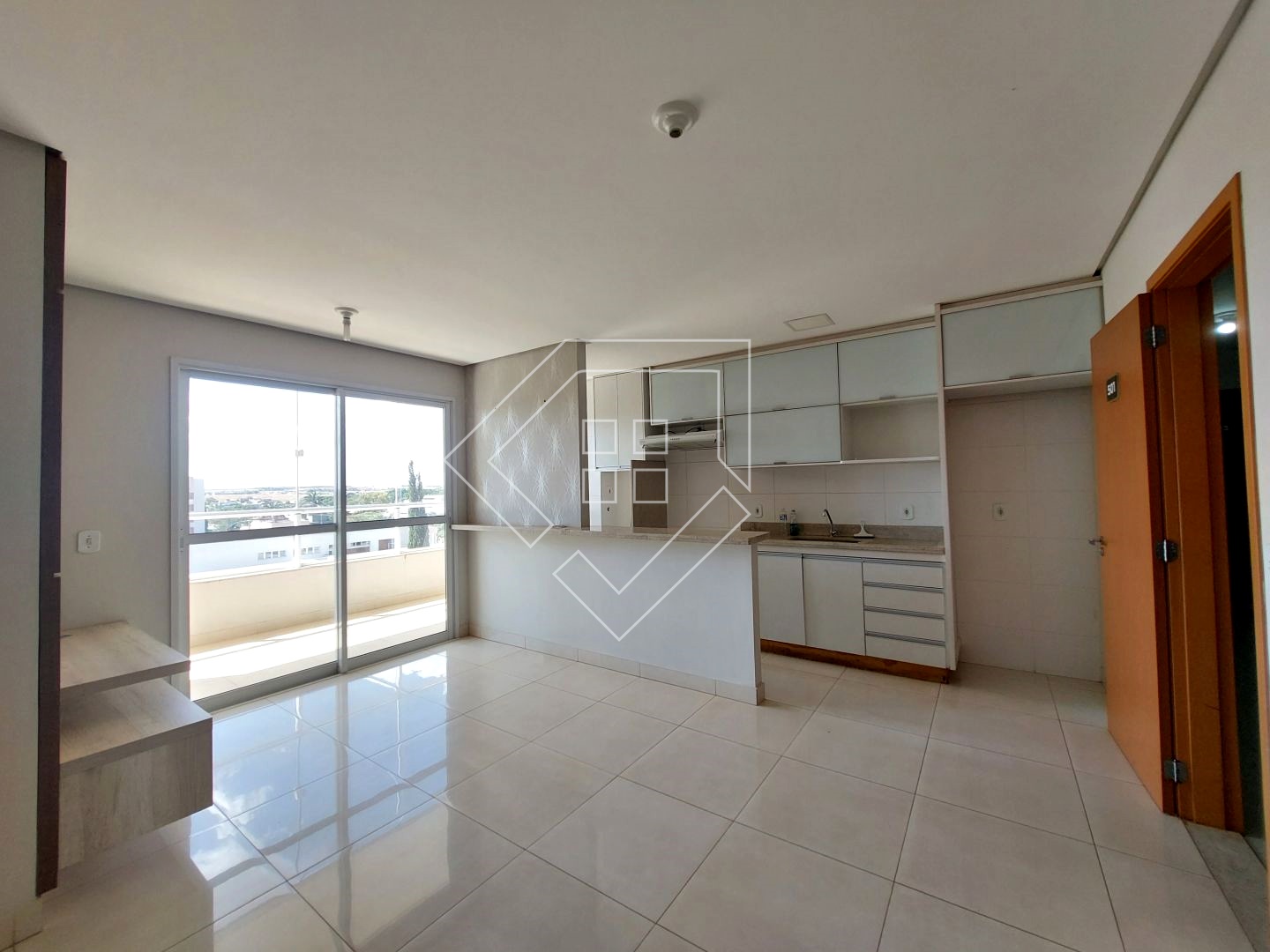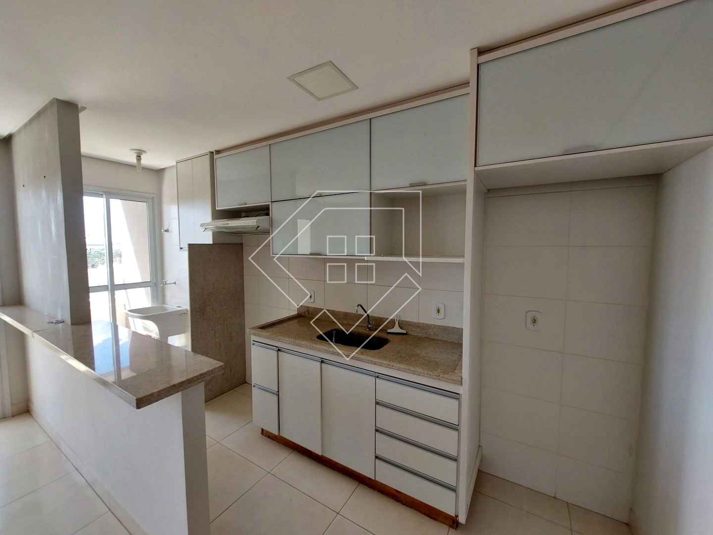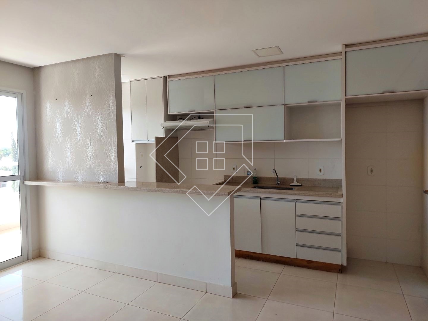 Apartamento para alugar com três quartos sendo um suíte, sala para ambiente de jantar e TV, sacada, cozinha conjugada com área de serviço, banheiro social e garagem coberta. Acabamento em porcelanato, bancada em granito, esquadrias em alumínio.