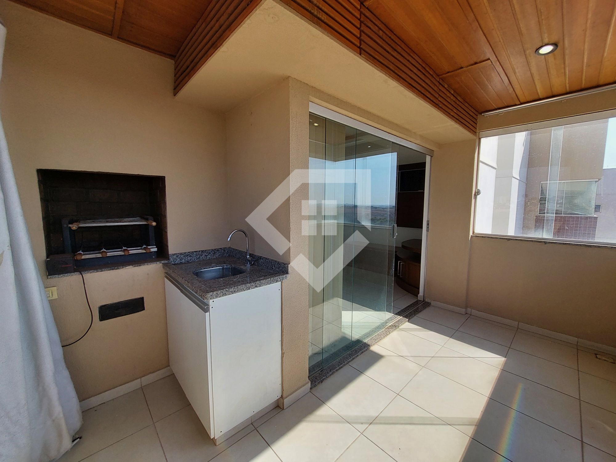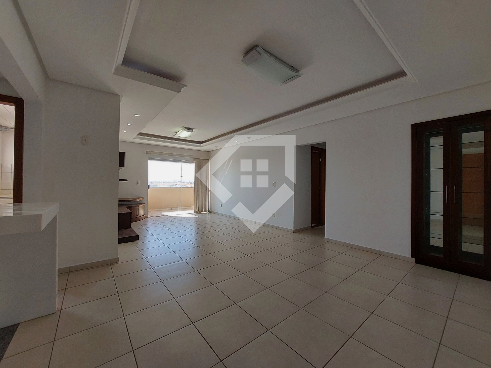 Apartamento para alugar em Mineiros com três quartos sendo um suíte, ampla sala para ambiente de jantar e TV, varanda gourmet com churrasqueira a carvão, cozinha completa, com armários, forno, fogão e coifa, área de serviço independente, banheiro social e garagem coberta e individuais para dois carros. O apartamento está em posição nascente, com vista para o condomínio portal do Cerrado, conta com painel de TV, cristaleira, armários na cozinha, nos banheiros e na área de serviço, guarda roupas embutido na suíte e em um quarto solteiro. Prédio localizado próximo ao fórum e ao lado do Colégio Ágape, conta com lazer completo, piscina, salão de festas e área para churrasco.