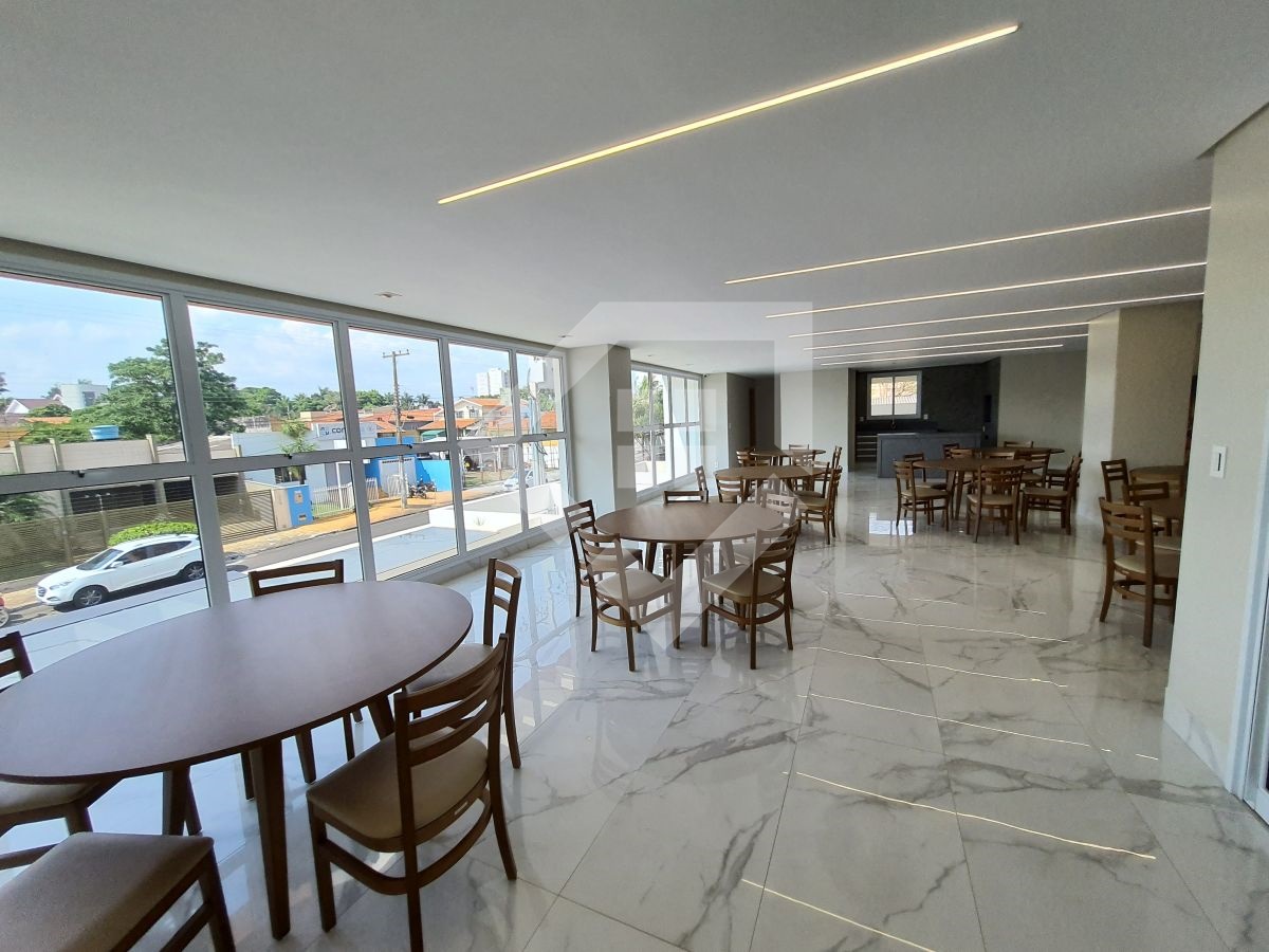 Apartamento alto padrão a venda em Mineiros GO, com três suítes plenas, cozinha e área de serviço independentes, lavabo, amplo living para ambientes de jantar e estar, laje técnica, escaninho e garagem individual para dois carros.