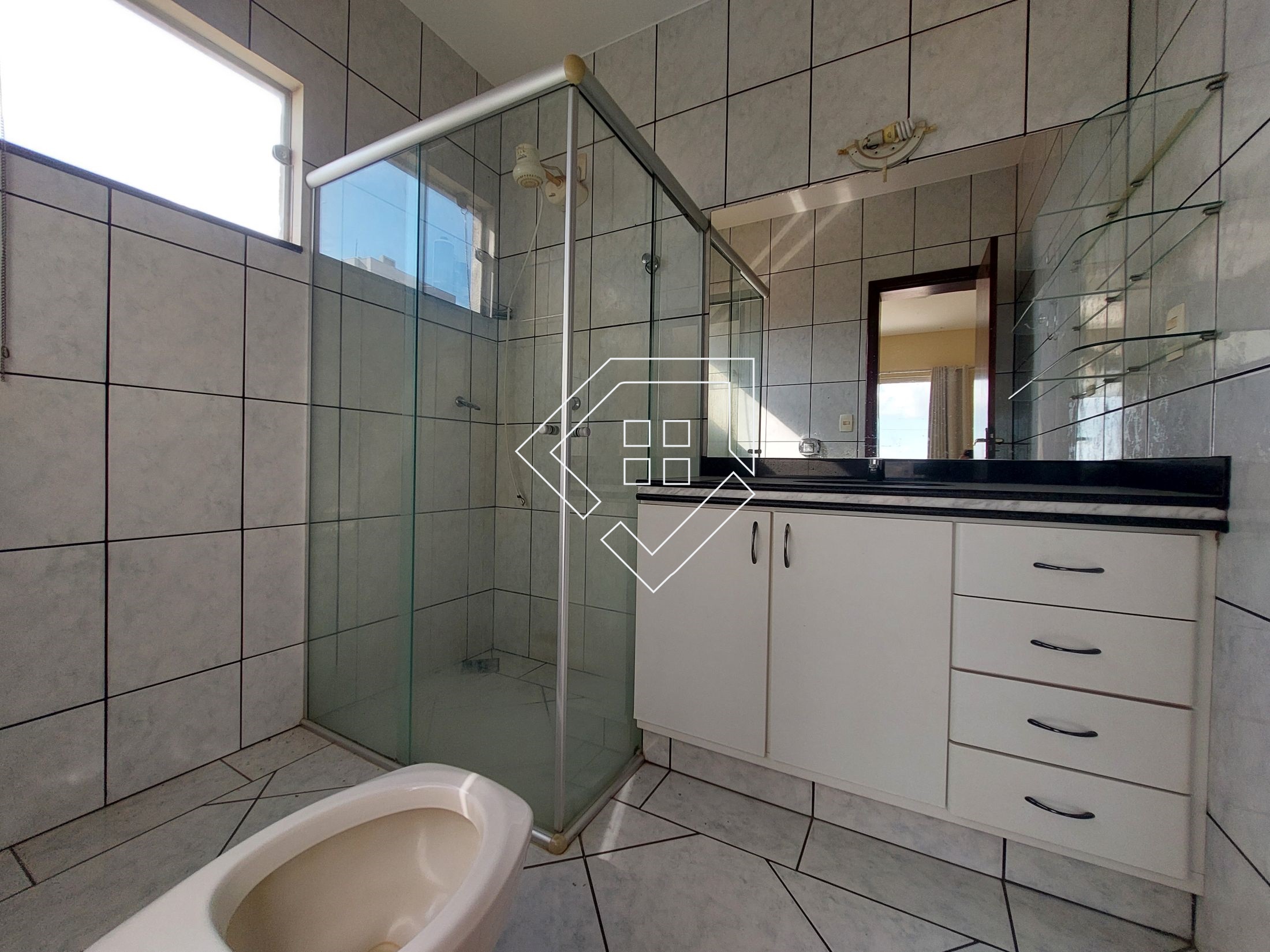 apartamento sobreloja localizado a 100 m da Faculdade Famp, possui dois quartos sendo um suíte com sacada, sala de tv, sala de jantar, cozinha com armários, banheiro social, área de serviço. No térreo possui área de lazer compartilhada, com churrasqueira e banheiro mais garagem coberta para dois carros. Piso com cerâmica e janelas em vidro temperado.