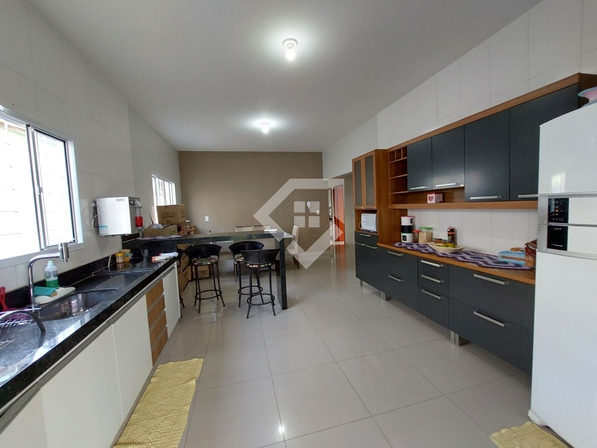 Casa a venda em Mineiros GO com quatro quartos sendo duas suítes, sala de TV, escritório, sala de jantar conjugada com cozinha, banheiro social, área de serviço, banheiro de visitas, despensa e garagem coberta.