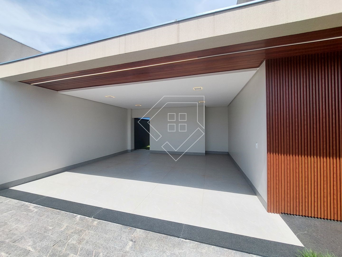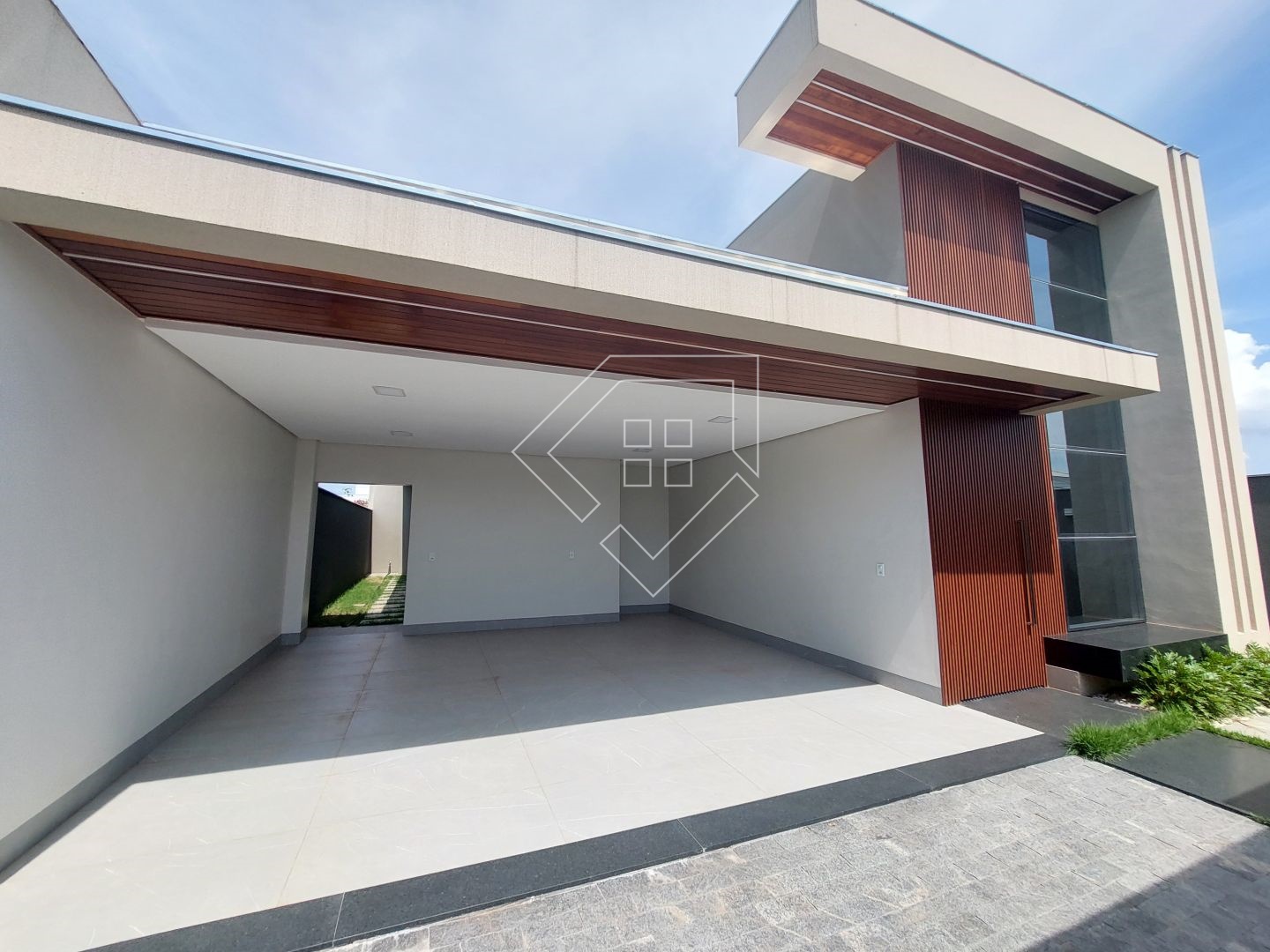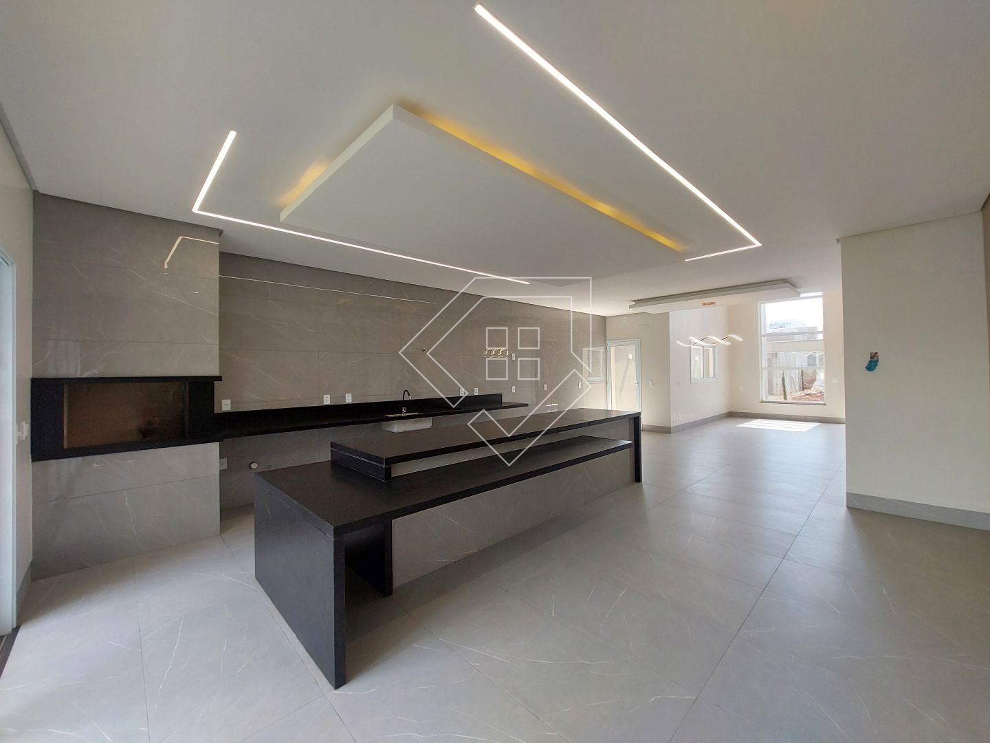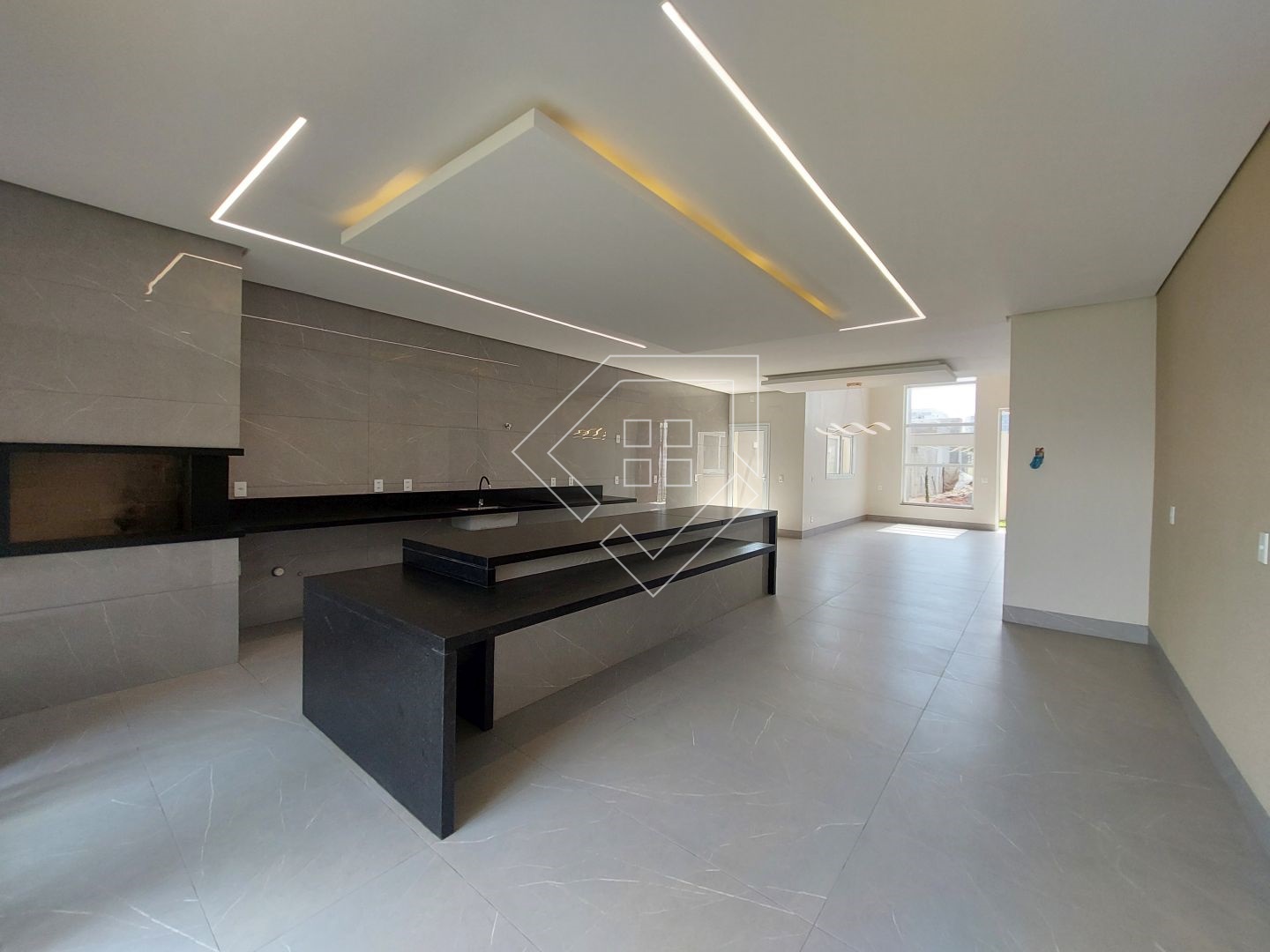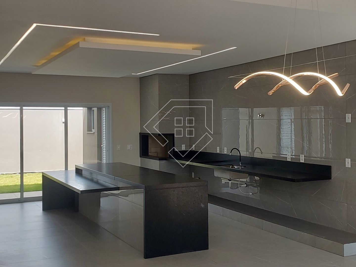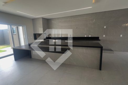 A casa contempla living com pé direito elevado, cozinha gourmet com churrasqueira em balanço, dois quartos, mais uma suíte com closet, banheiro social, lavabo, lavanderia fechada, garagem coberta para dois veículos.