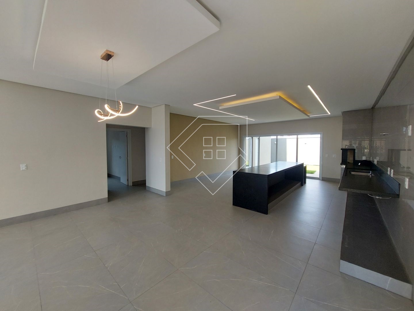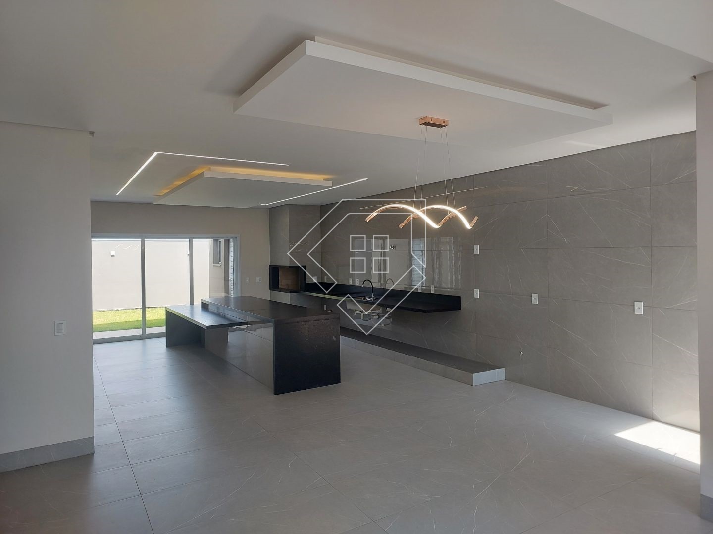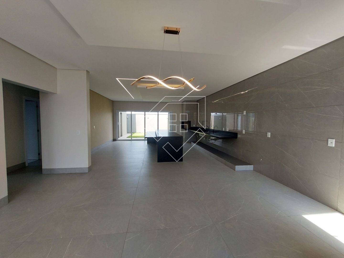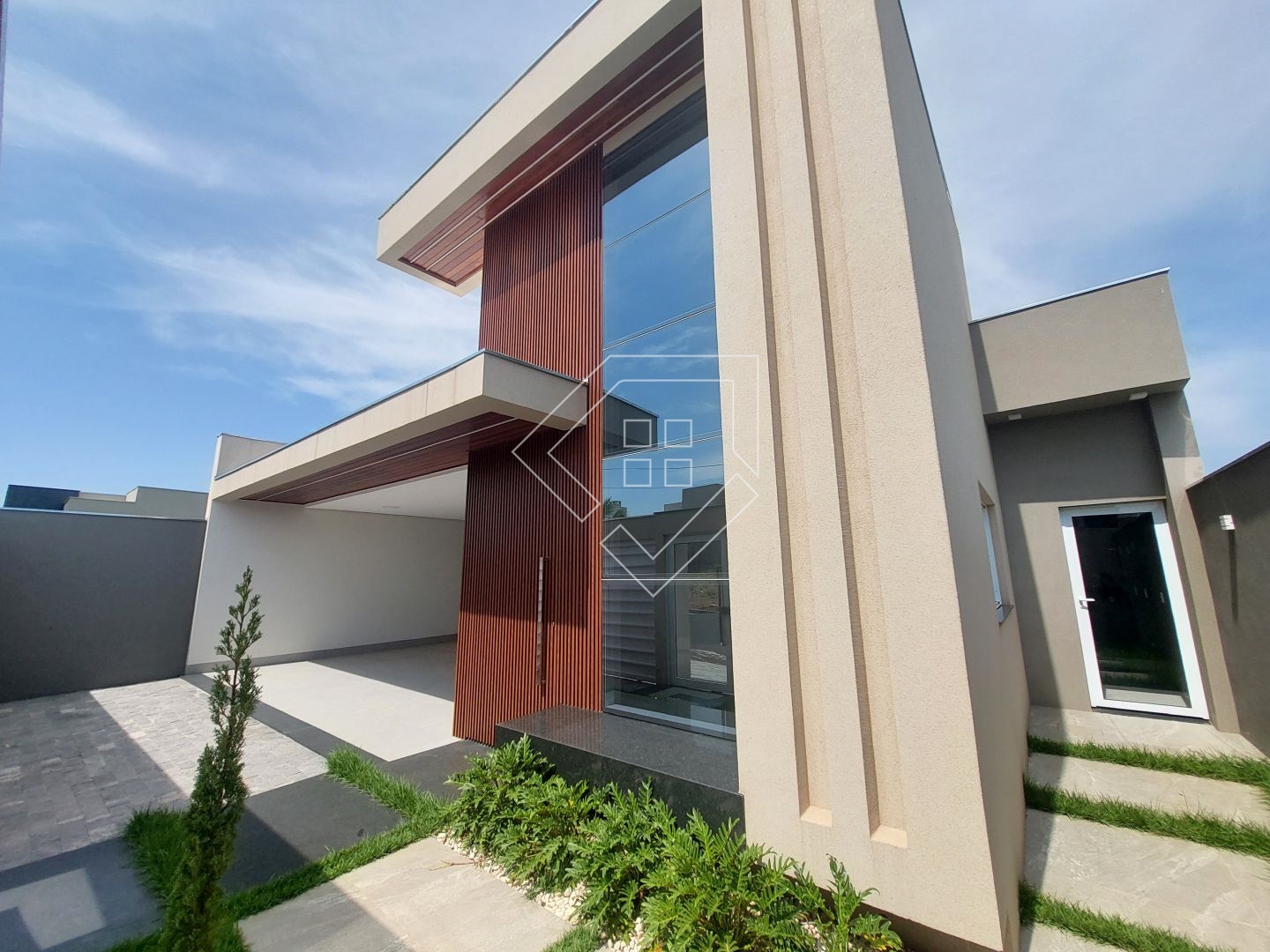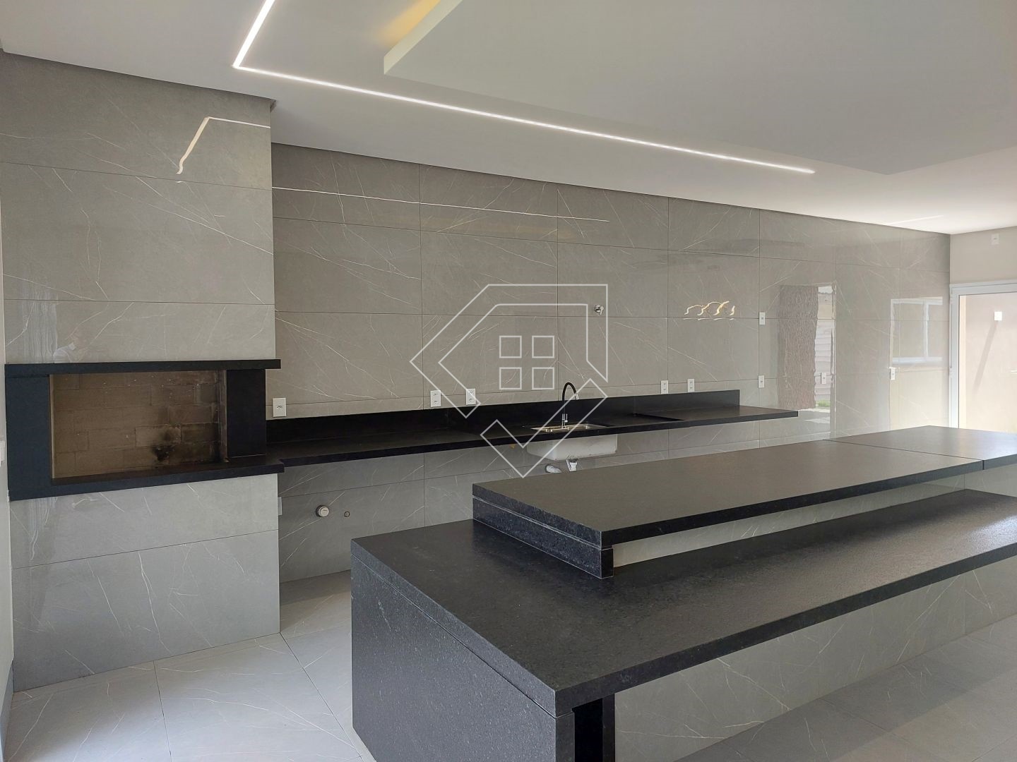 A casa contempla living com pé direito elevado, cozinha gourmet com churrasqueira em balanço, dois quartos, mais uma suíte com closet, banheiro social, lavabo, lavanderia fechada, garagem coberta para dois veículos.