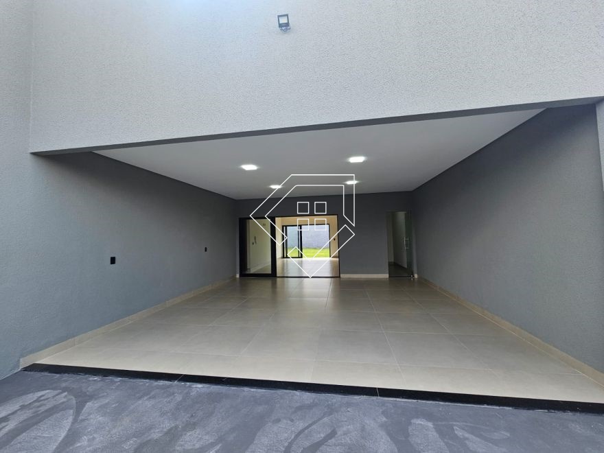 Casa a venda em Mineiros GO, com três quartos sendo um suíte com espaço para closet, banheiro social, sala de TV, ampla cozinha gourmet com armários, churrasqueira e ambiente para jantar com extensão para garagem, garagem coberta para dois carros e mais dois carros fora da cobertura, despensa, área de serviço e amplo quintal gramado.