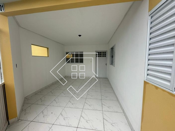 Casa par alugar em Mineiros-GO com três quartos, sala conj. cozinha, banheiro social, área de serviço e garagem coberta. Piso em Cerâmica e forro de gesso, quintal concretado.