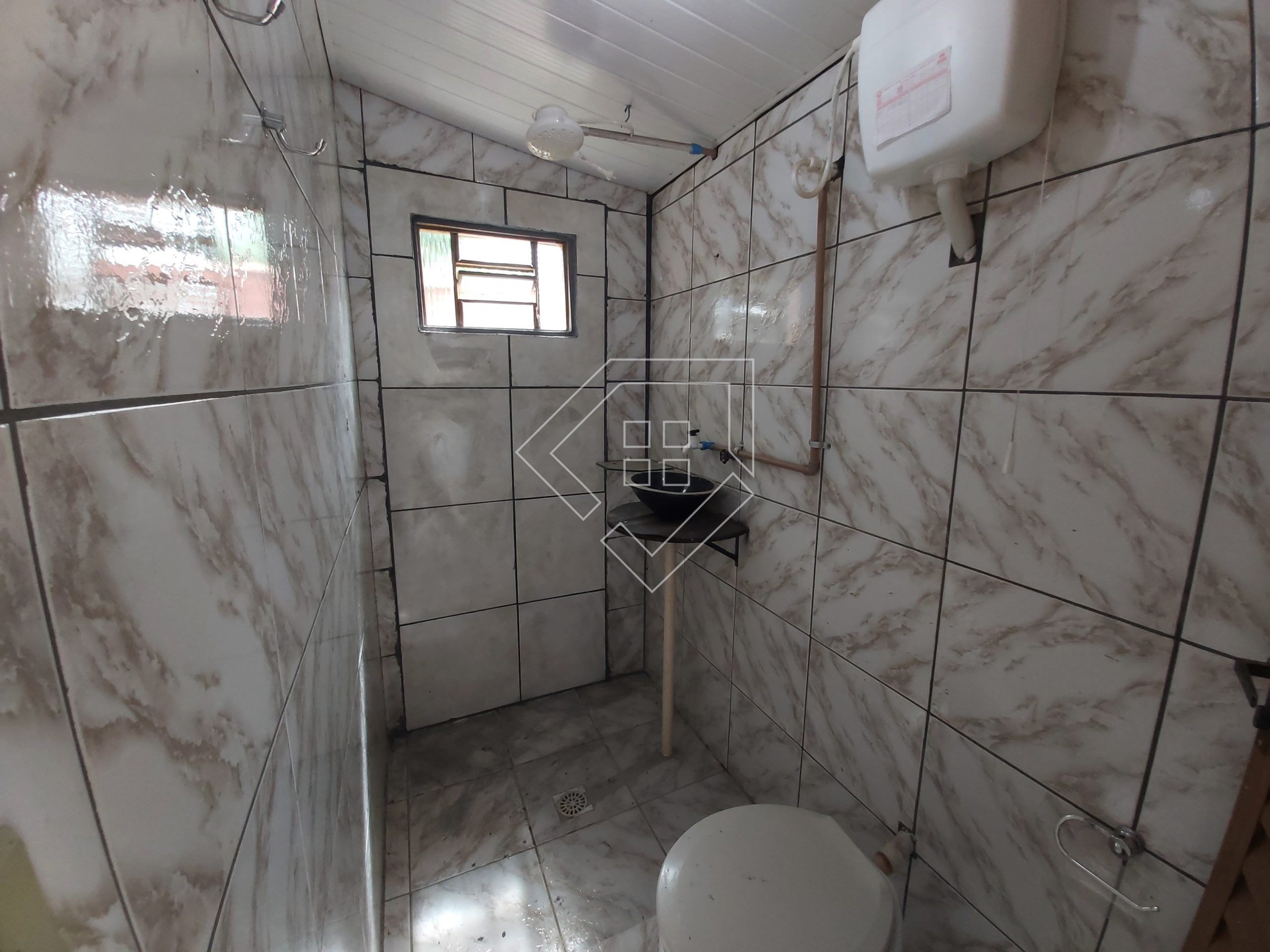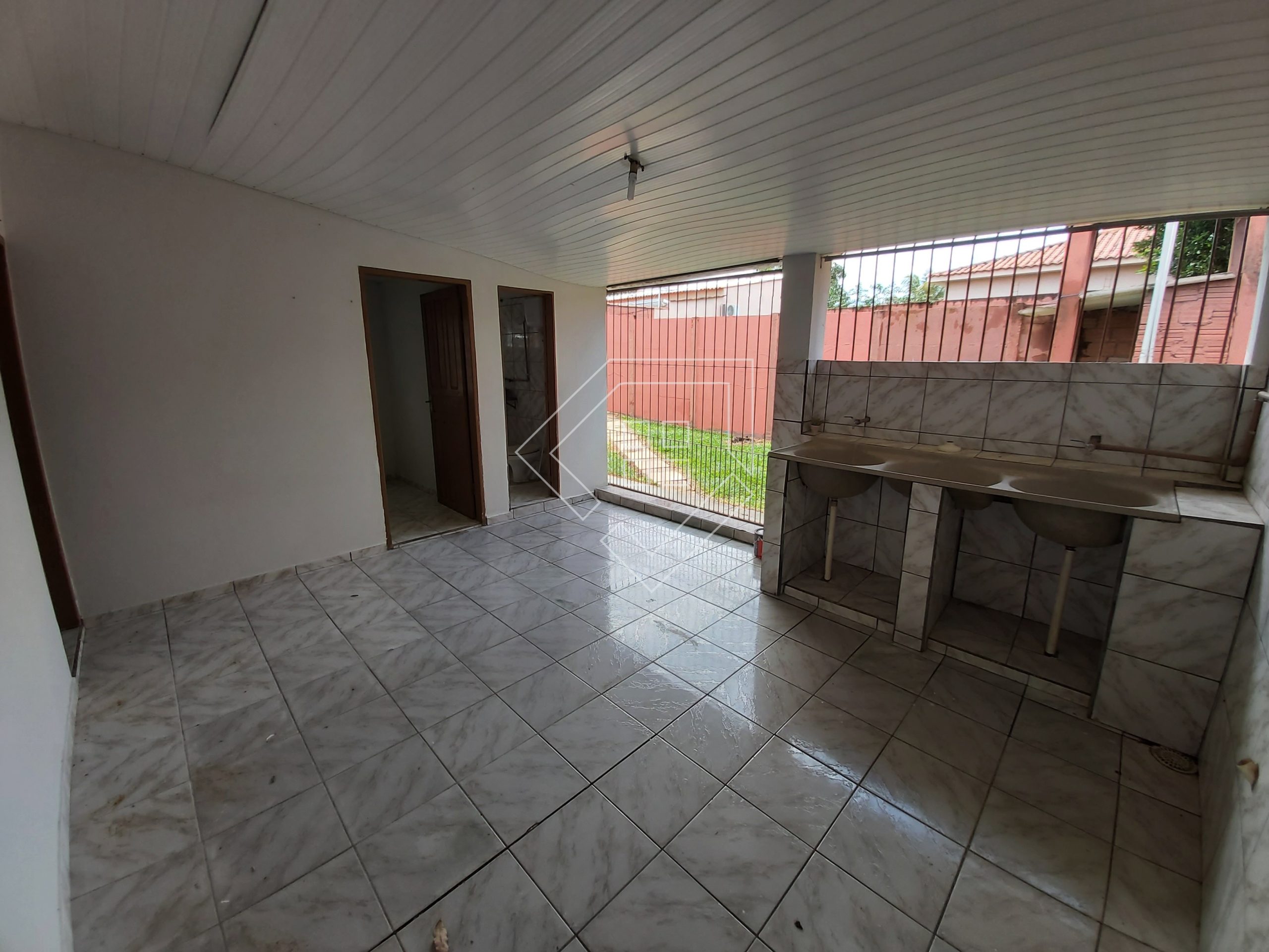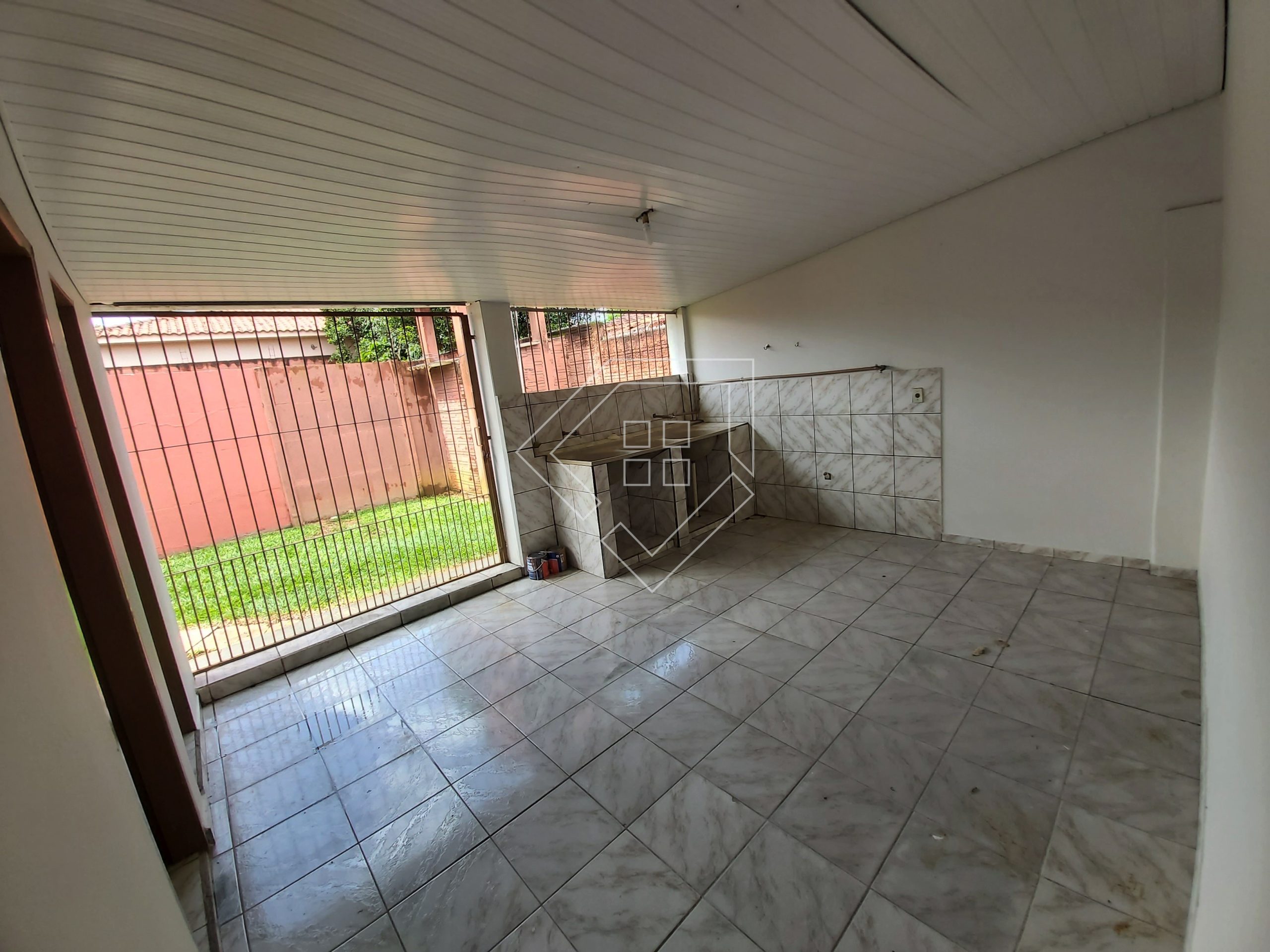 A casa possui três quartos, sala de tv, sala de jantar, cozinha, dois banheiros, área de serviço, despensa e garagem coberta. Piso com cerâmica e teto forrado