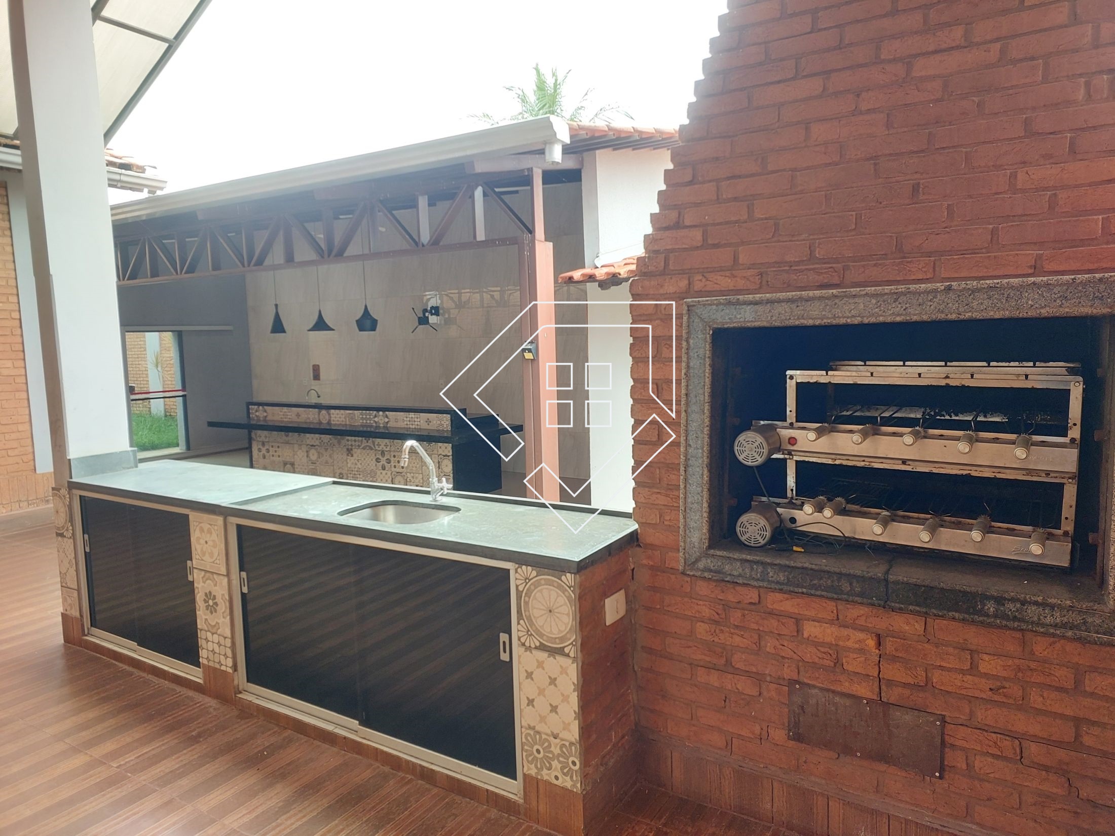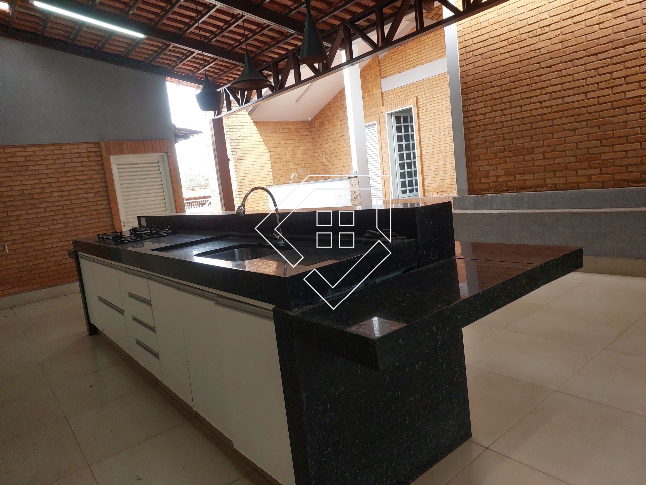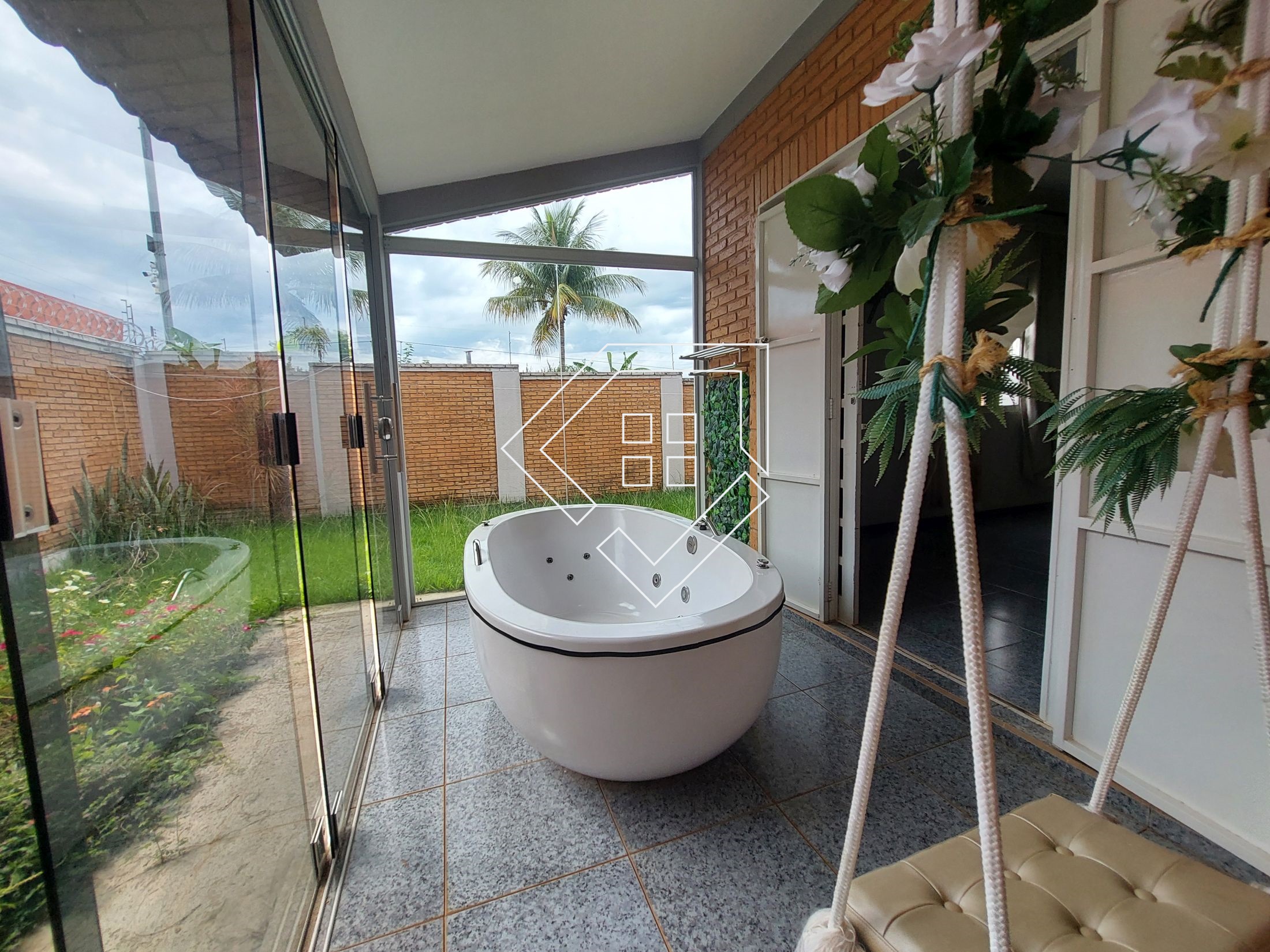 Casa térrea com três quartos sendo um suíte com closet e sacada com hidromassagem, ampla sala de estar com sacada para o jardim, sala de jantar, sala íntima que pode se convertida em mais um dormitório, banheiro social, circulação, lavabo, cozinha repleta em armários e com fogão, varanda gourmet com bancada ilha e armários, área gourmet com churrasqueira, lavanderia independente, banheiro de visitas, despensa, garagem coberta e amplo quintal gramado. Casa toda em laje com 331 m², cômodos arejados espaçosos, em com um amplo espaço externo, tudo isso em um terreno com 866 m² de esquina, de frente para área verde (futura praça). Bairro com completa infraestrutura, próximo ao shopping.