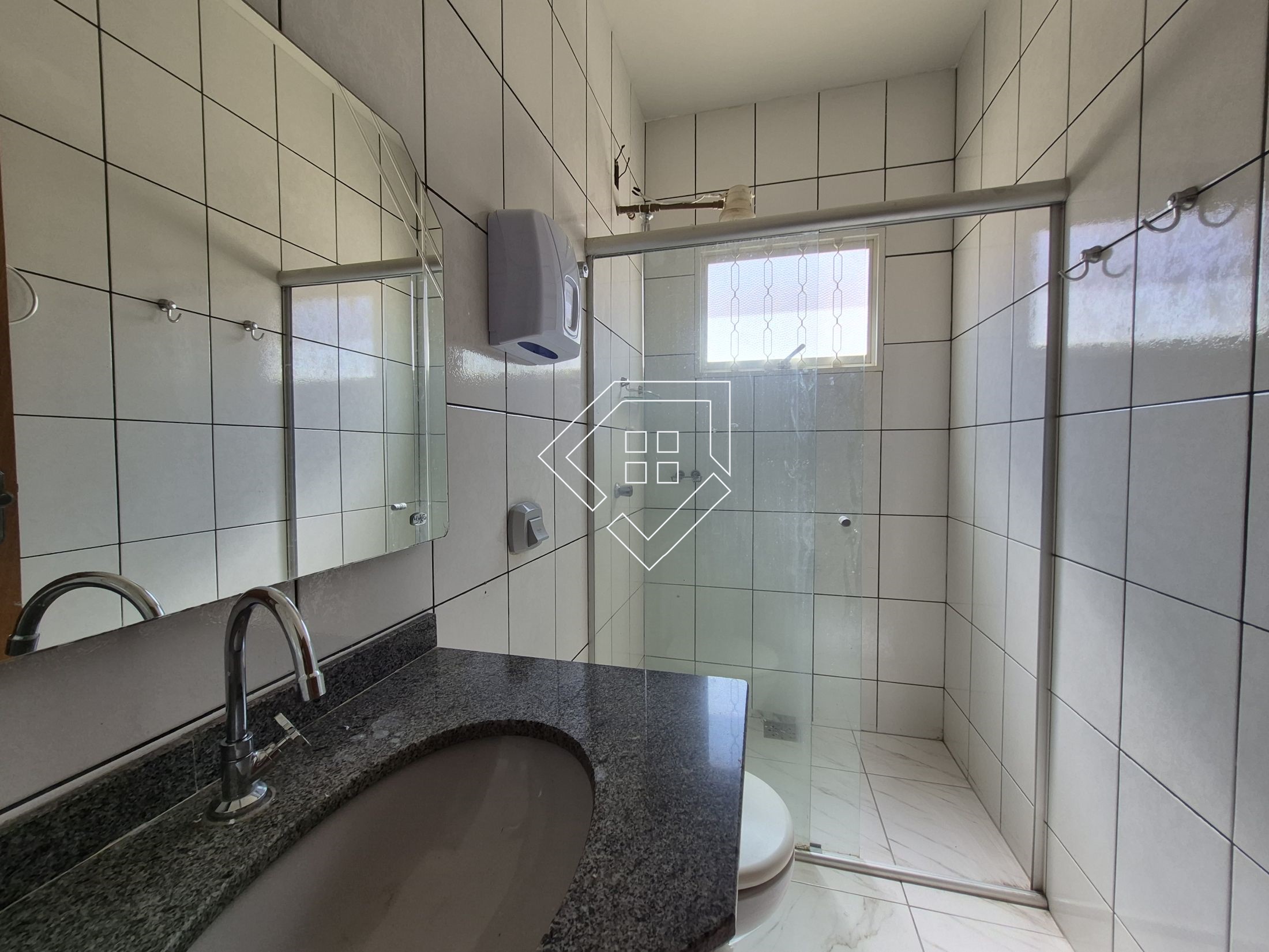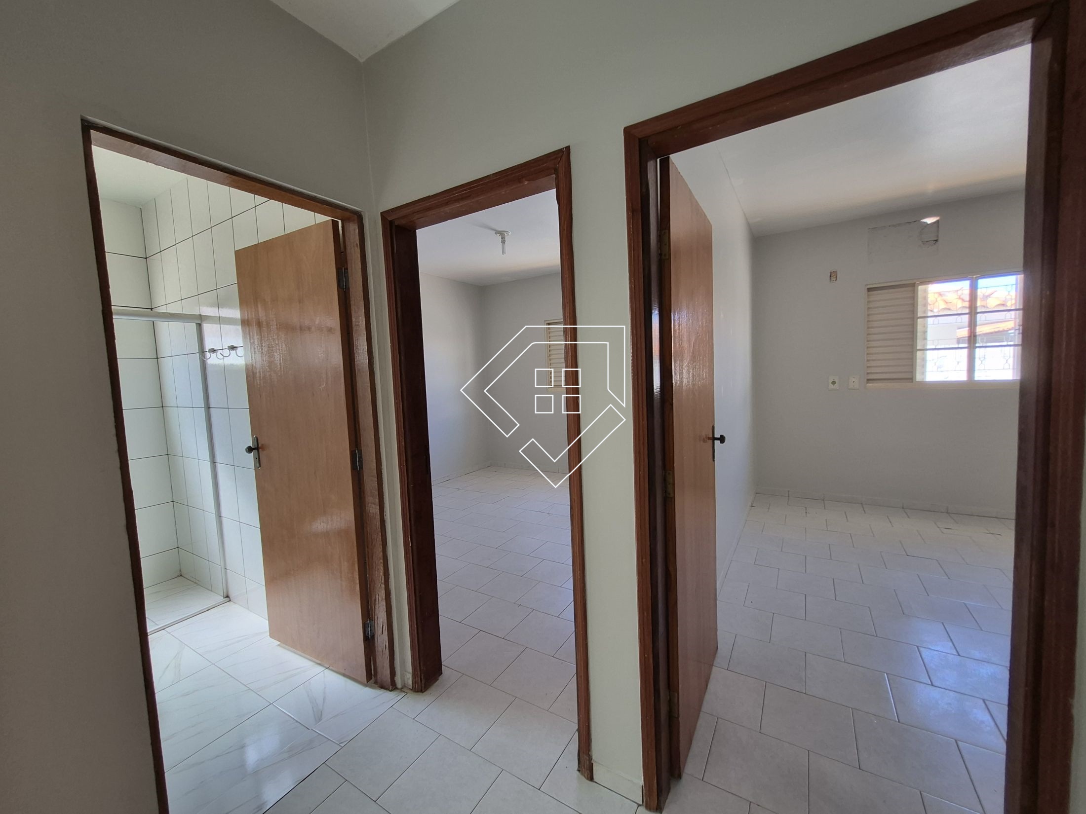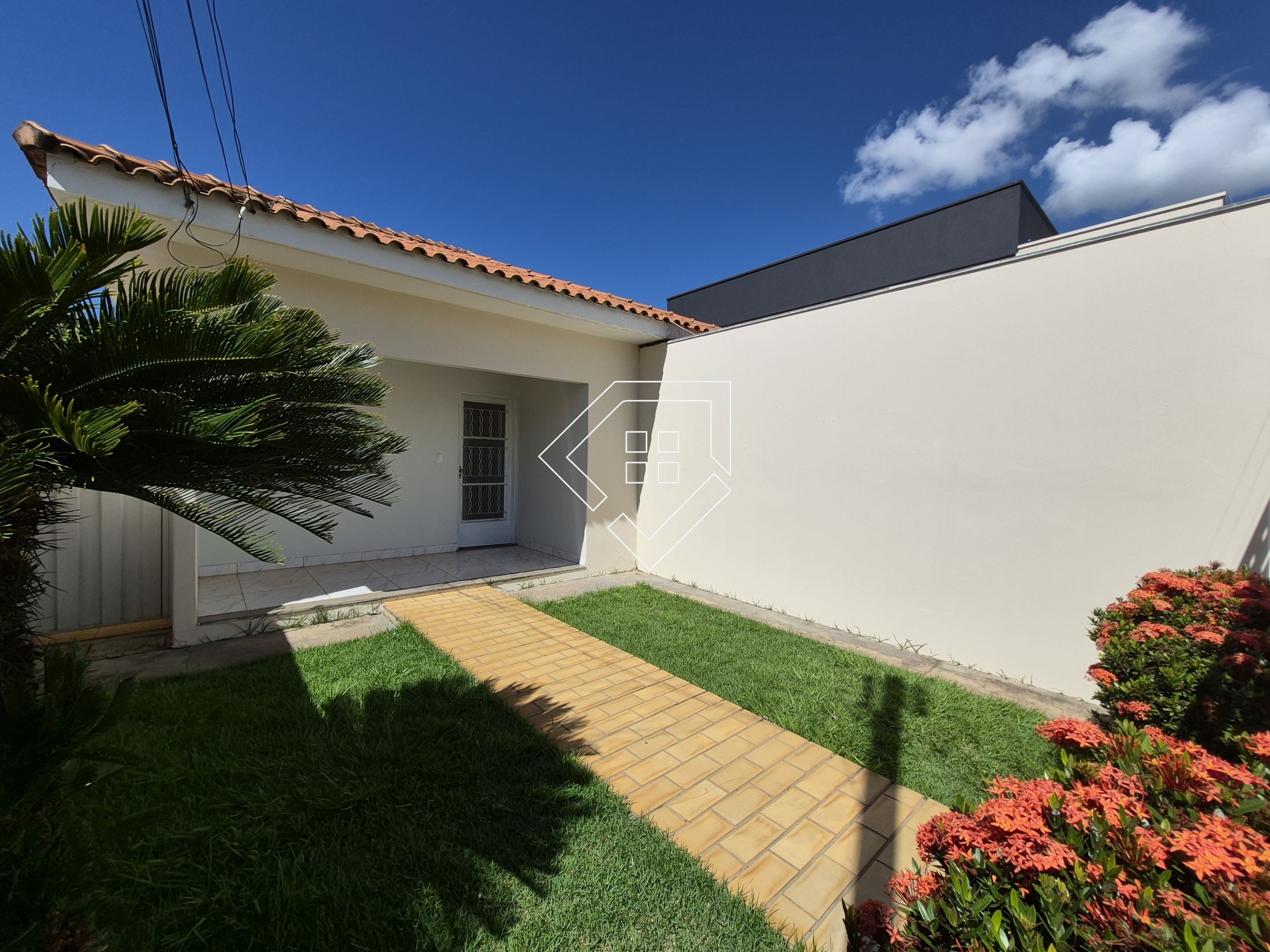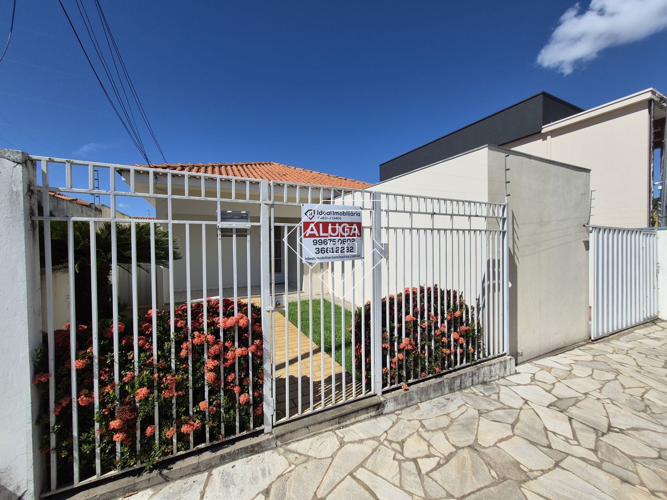 Casa para alugar em Mineiros, com três quartos sendo um suíte, banheiro social, cozinha com armários, sala de TV, sala de jantar, hall de entrada, jardim, lavanderia, despensa e garagem coberta. Acabamento em cerâmica, teto com laje, cozinha rica em armários, portão automatizado e cerca elétrica.