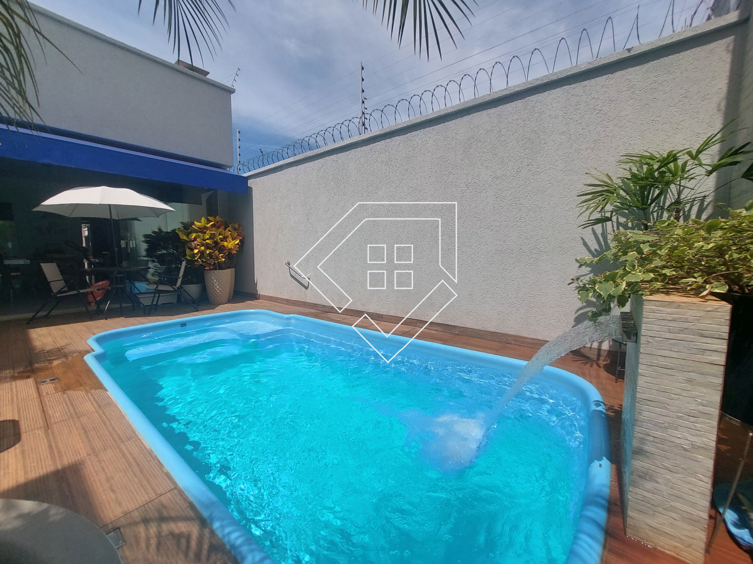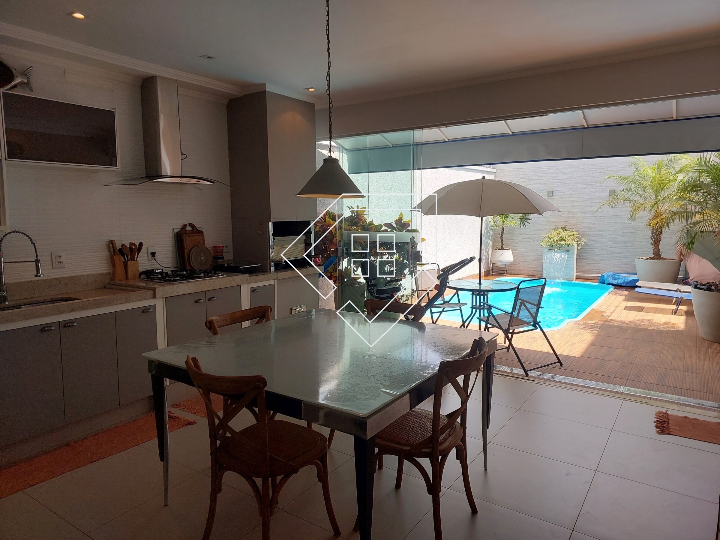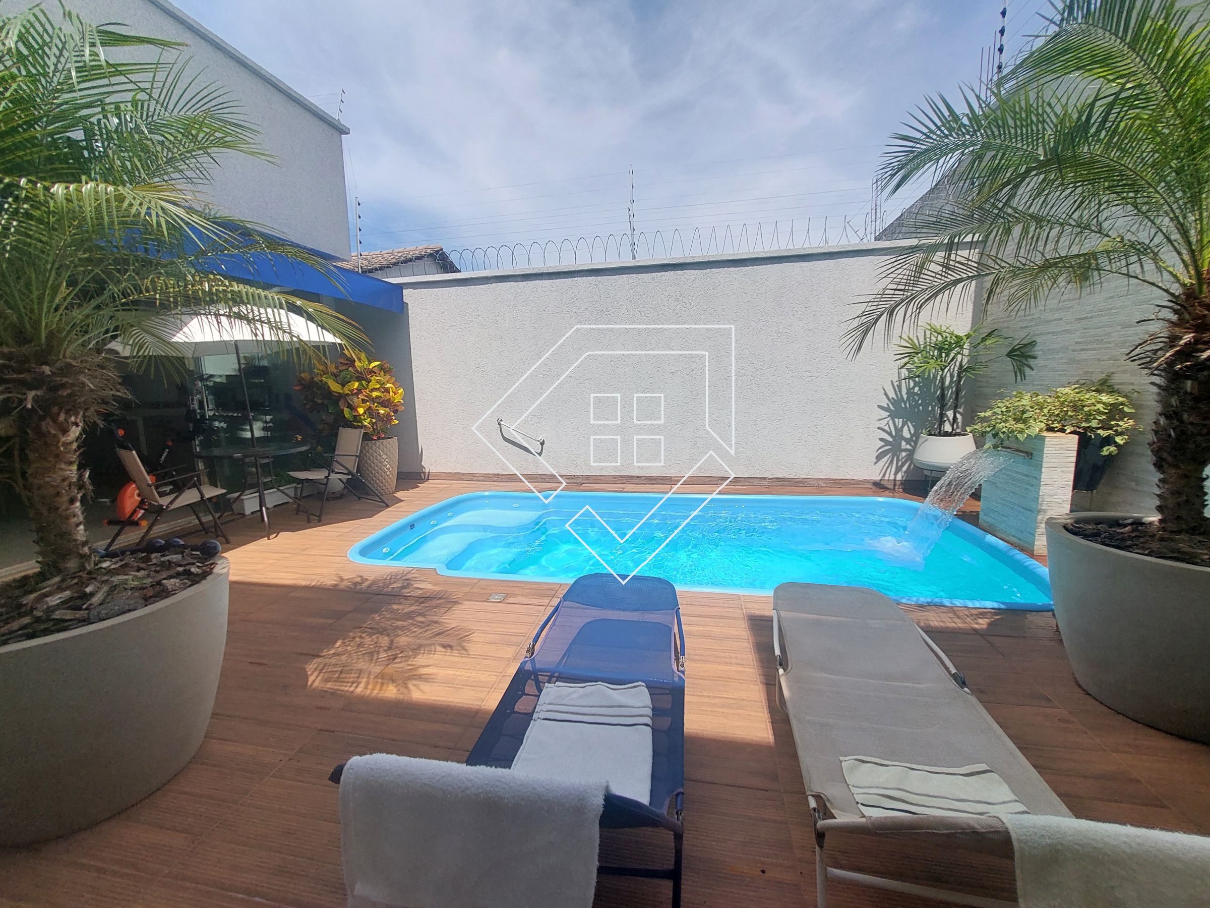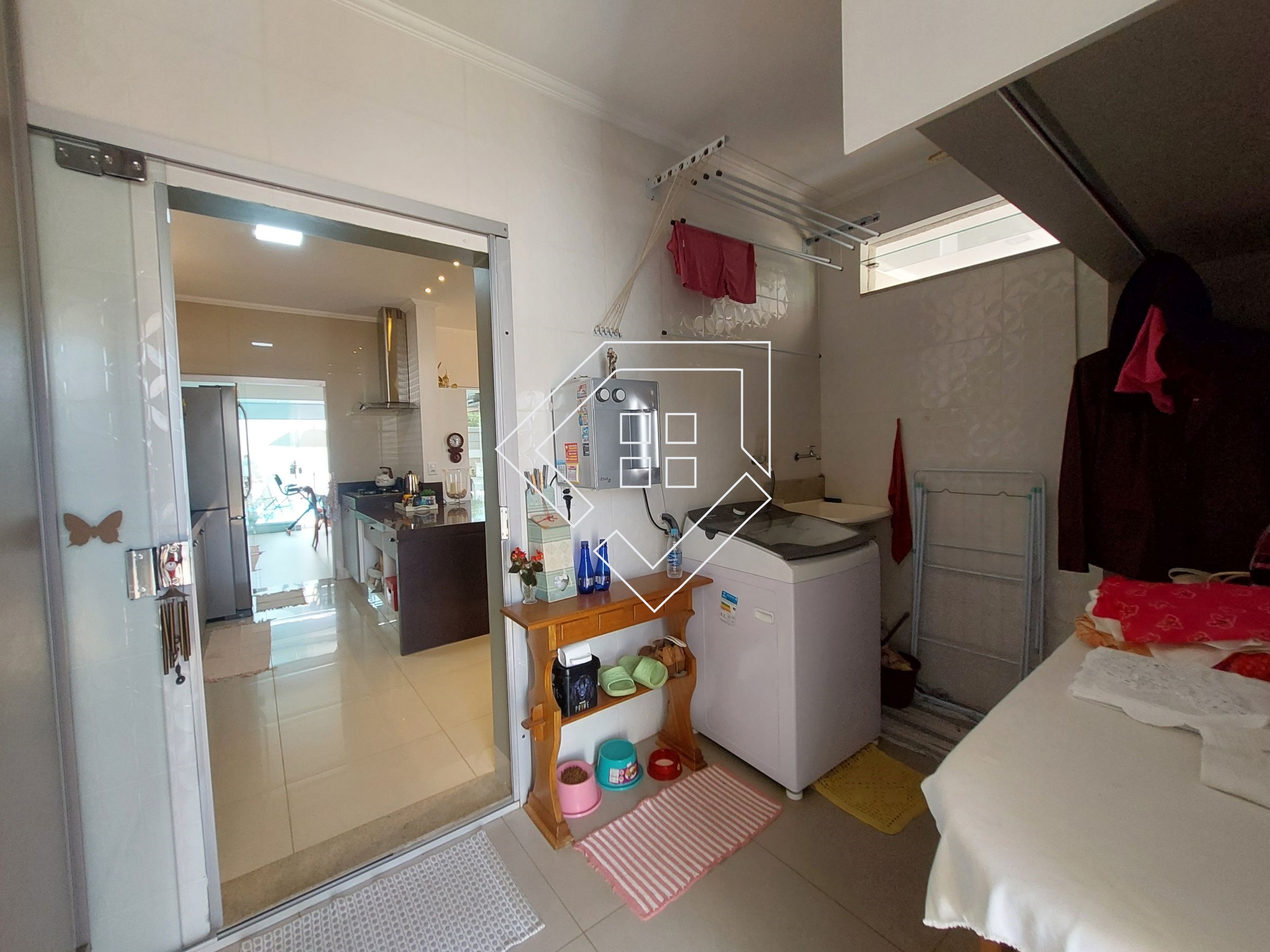 Casa com três quartos sendo um suíte com closet e banheira de hidromassagem, corredor, banheiro social, amplo living para ambiente de estar e jantar, cozinha, lavanderia independente, estendal, varanda gourmet com churrasqueira, lavabo, área de lazer com piscina, deck seco e ampla garagem.