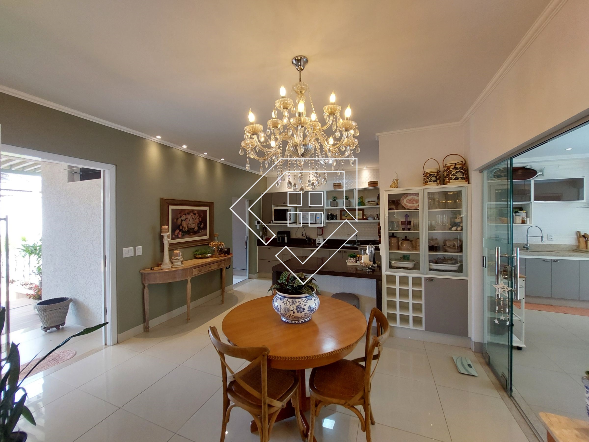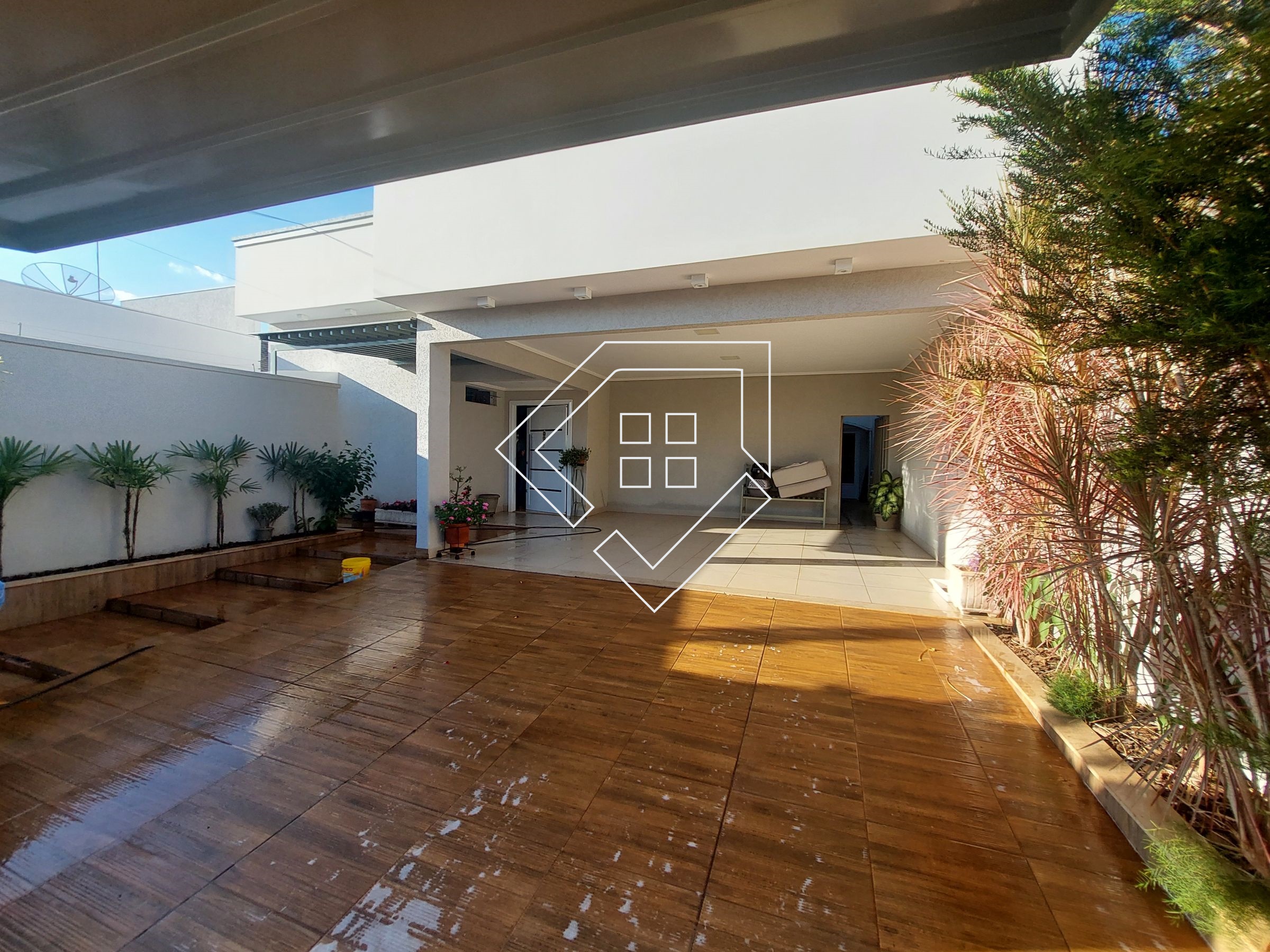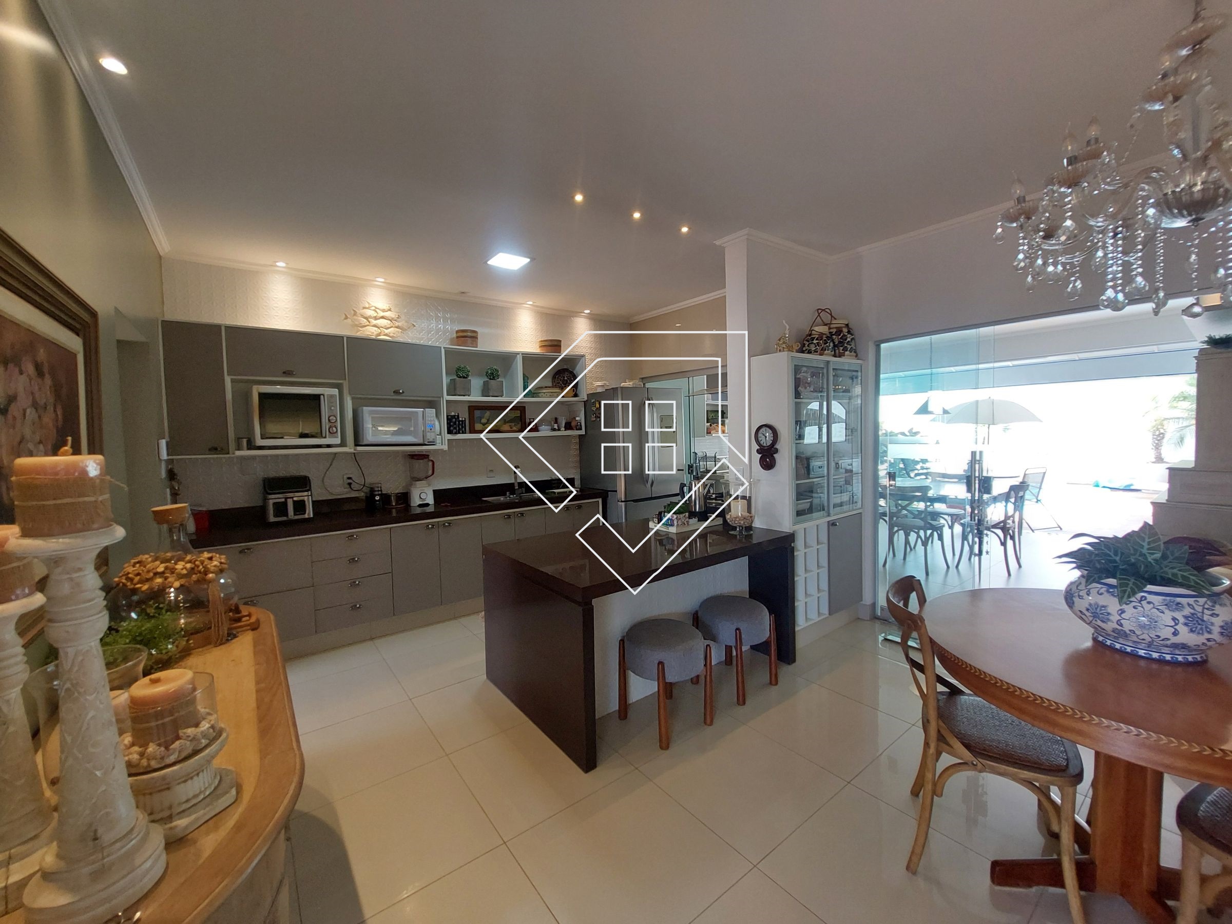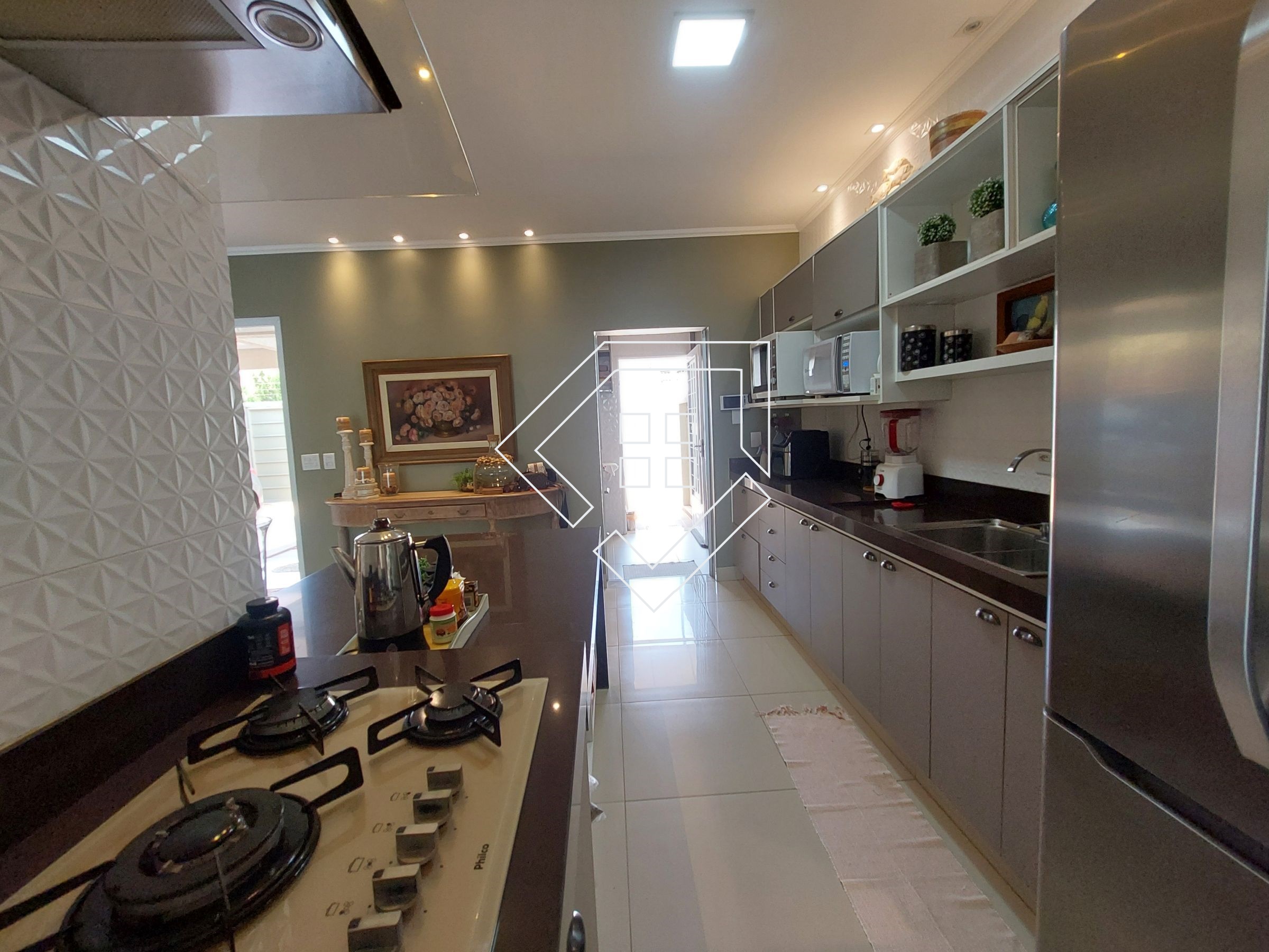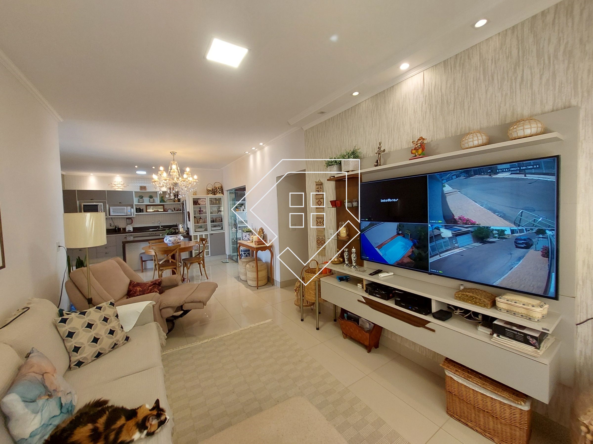 Casa com três quartos sendo um suíte com closet e banheira de hidromassagem, corredor, banheiro social, amplo living para ambiente de estar e jantar, cozinha, lavanderia independente, estendal, varanda gourmet com churrasqueira, lavabo, área de lazer com piscina, deck seco e ampla garagem.