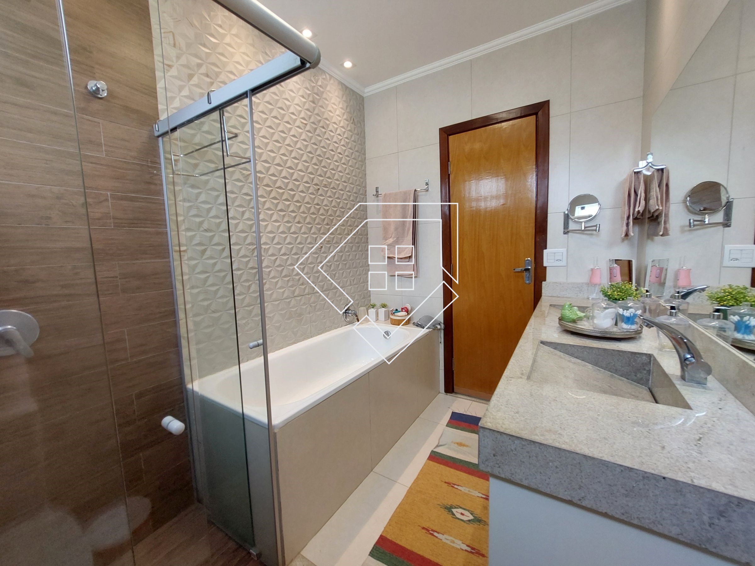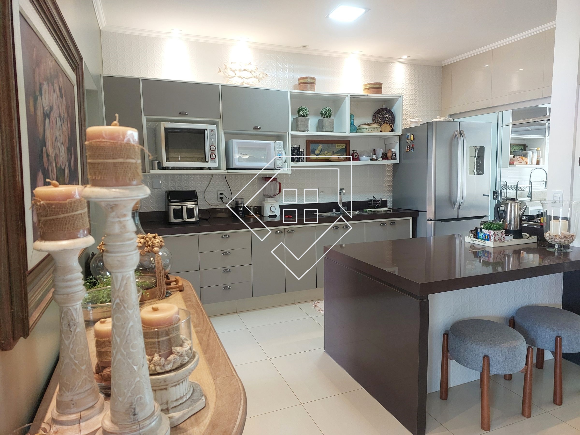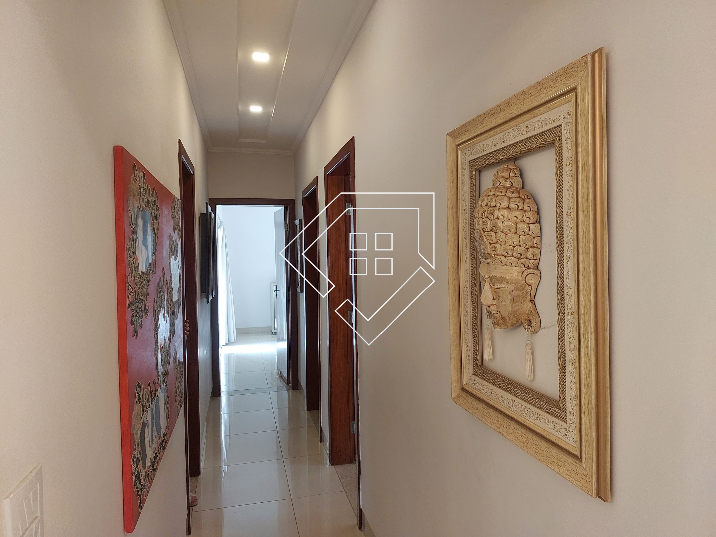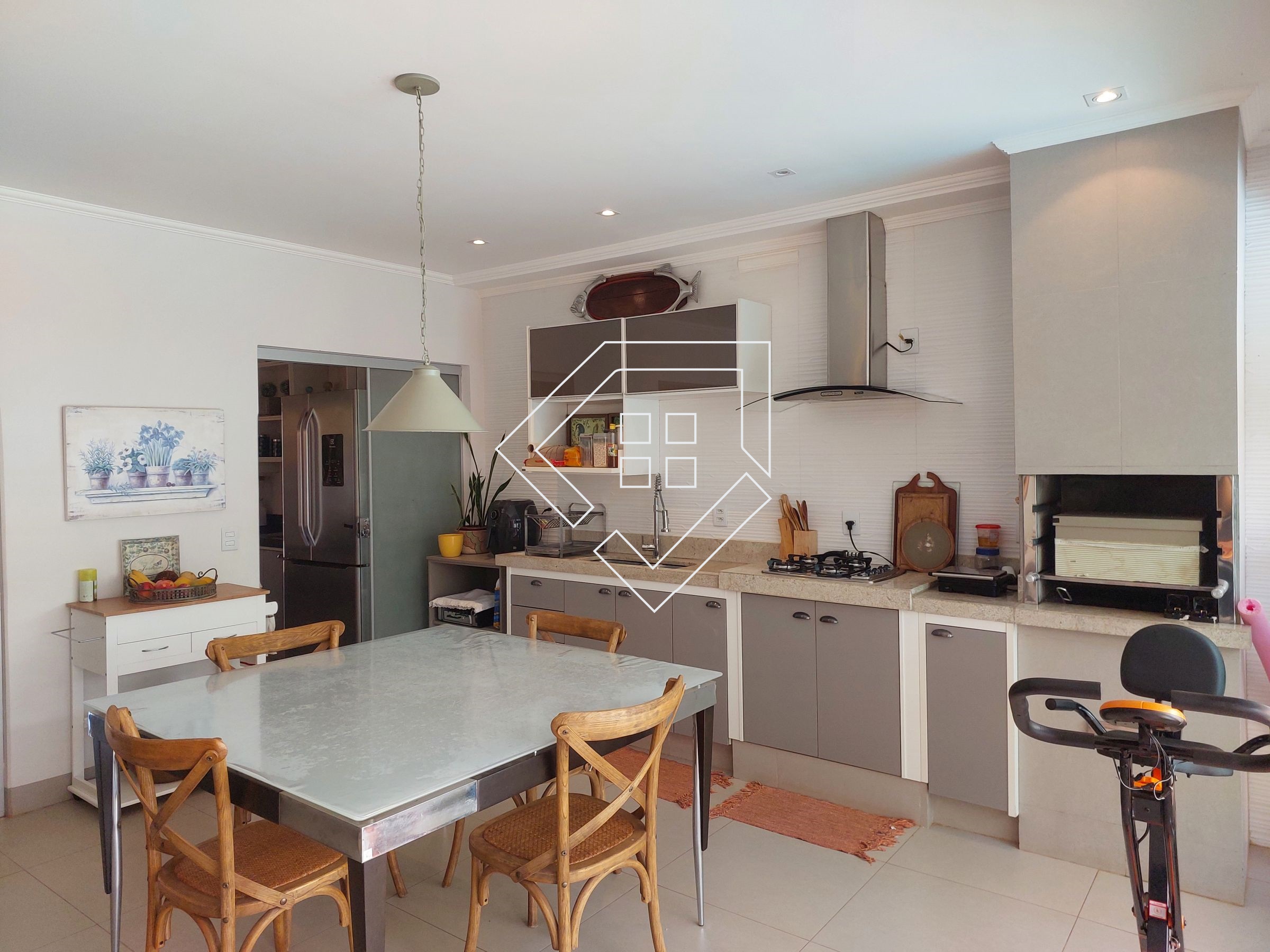Casa com três quartos sendo um suíte com closet e banheira de hidromassagem, corredor, banheiro social, amplo living para ambiente de estar e jantar, cozinha, lavanderia independente, estendal, varanda gourmet com churrasqueira, lavabo, área de lazer com piscina, deck seco e ampla garagem.