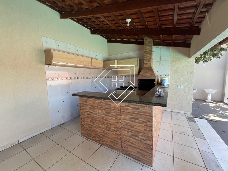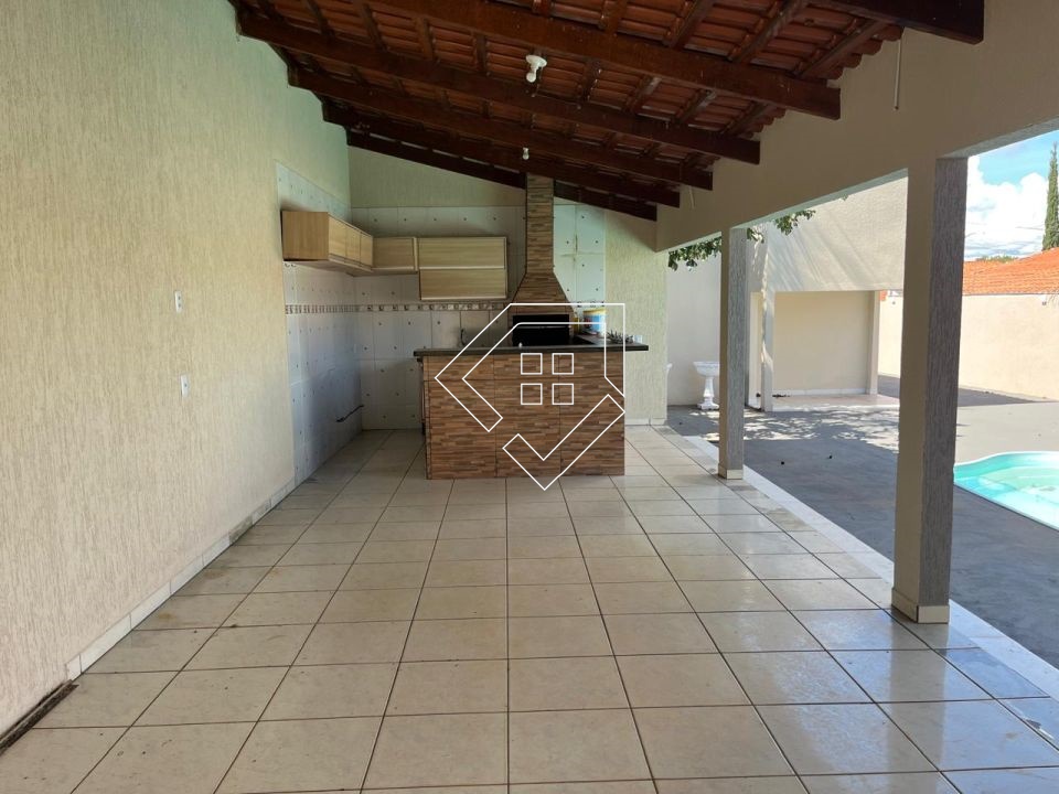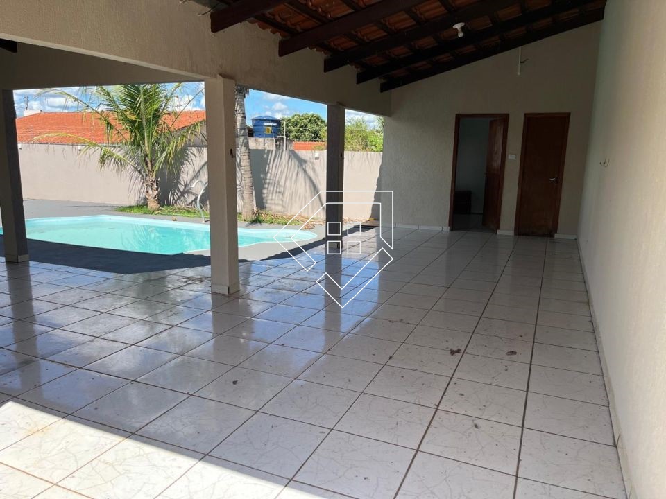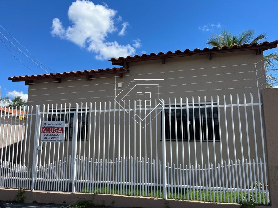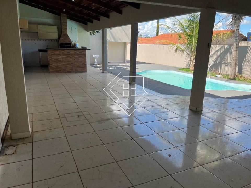 Casa para alugar em Mineiros com três quartos sendo um suíte, sala, cozinha, banheiro social, varanda gourmet com churrasqueira, despensa com lavanderia, garagem e lazer com piscina aquecida.