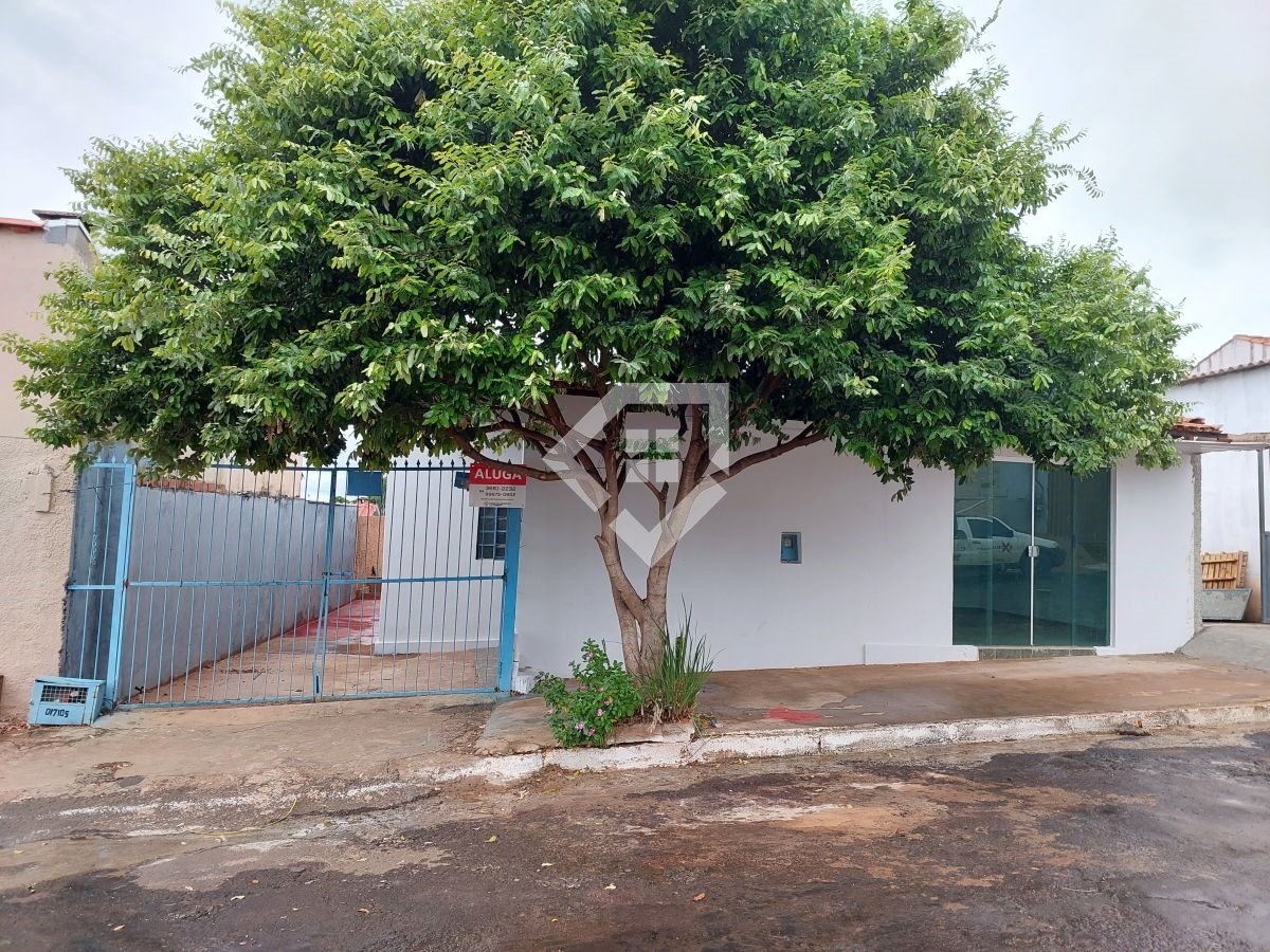 Casa para alugar em Mineiros Go com ponto comercial na frente, sala, cozinha, banheiro social, um quarto, área de serviço e garagem. Aos fundos quintal, piso em vermelhão e teto forrado. Localizada no setor Oeste, próximo ao centro.