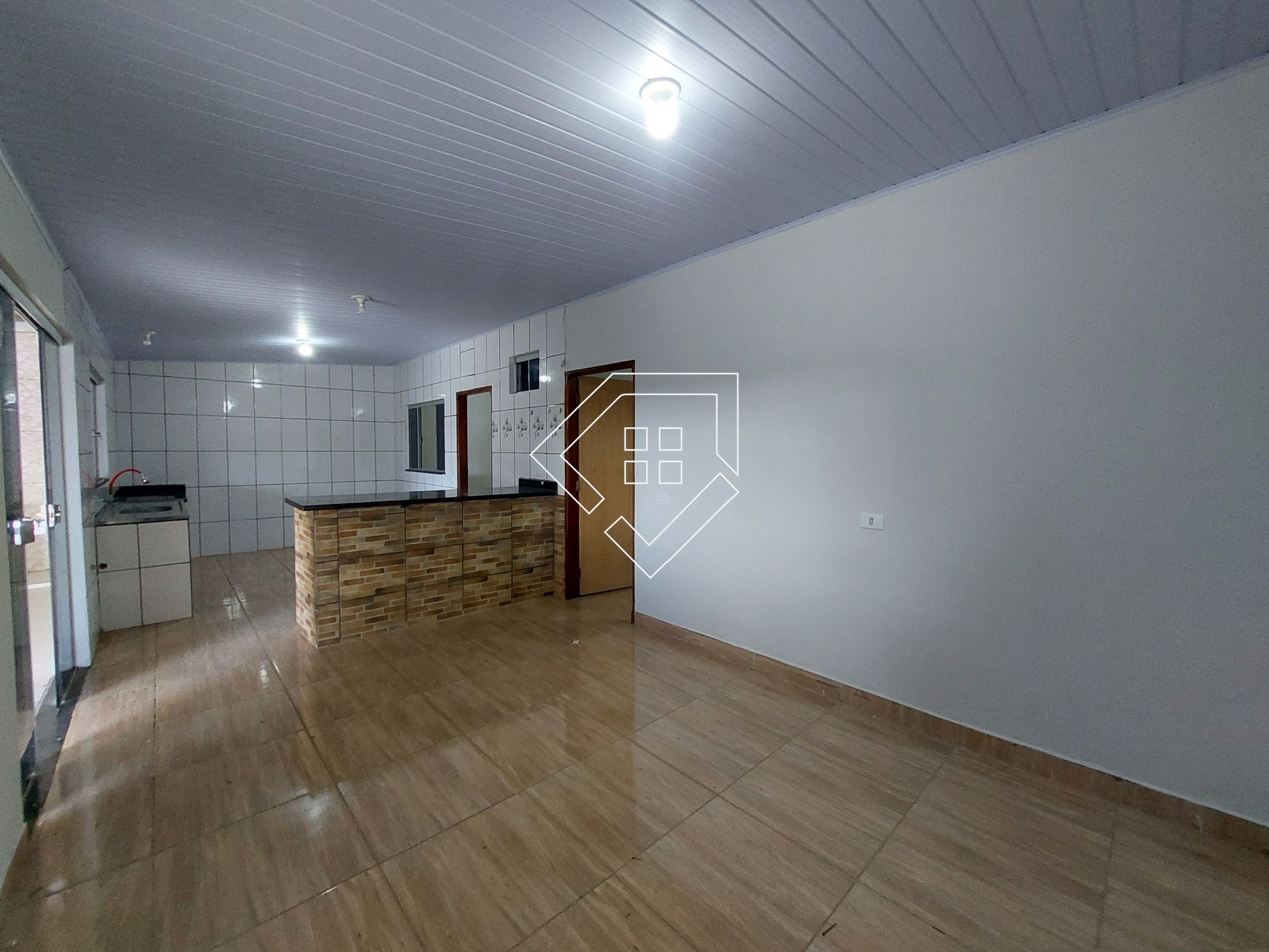 A casa possui duas amplas suítes, uma cozinha conjugada com a sala, varanda gourmet com churrasqueira, despensa e garagem coberta. Acesso pela garagem com portão eletrônico, casa forrada em PVC e piso revestido com cerâmica
