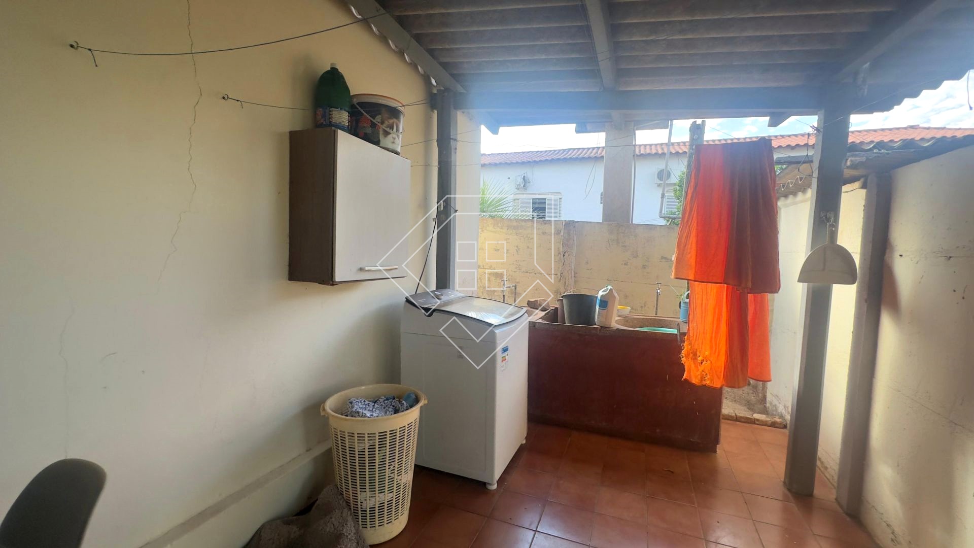 A casa contempla três quartos sendo um suíte, sala, cozinha, banheiro social, área de serviço, garagem coberta para dois carros, amplo quintal, escritório na frente. Acabamento em cerâmica, teto forrado, coberta com telhas de cerâmica.