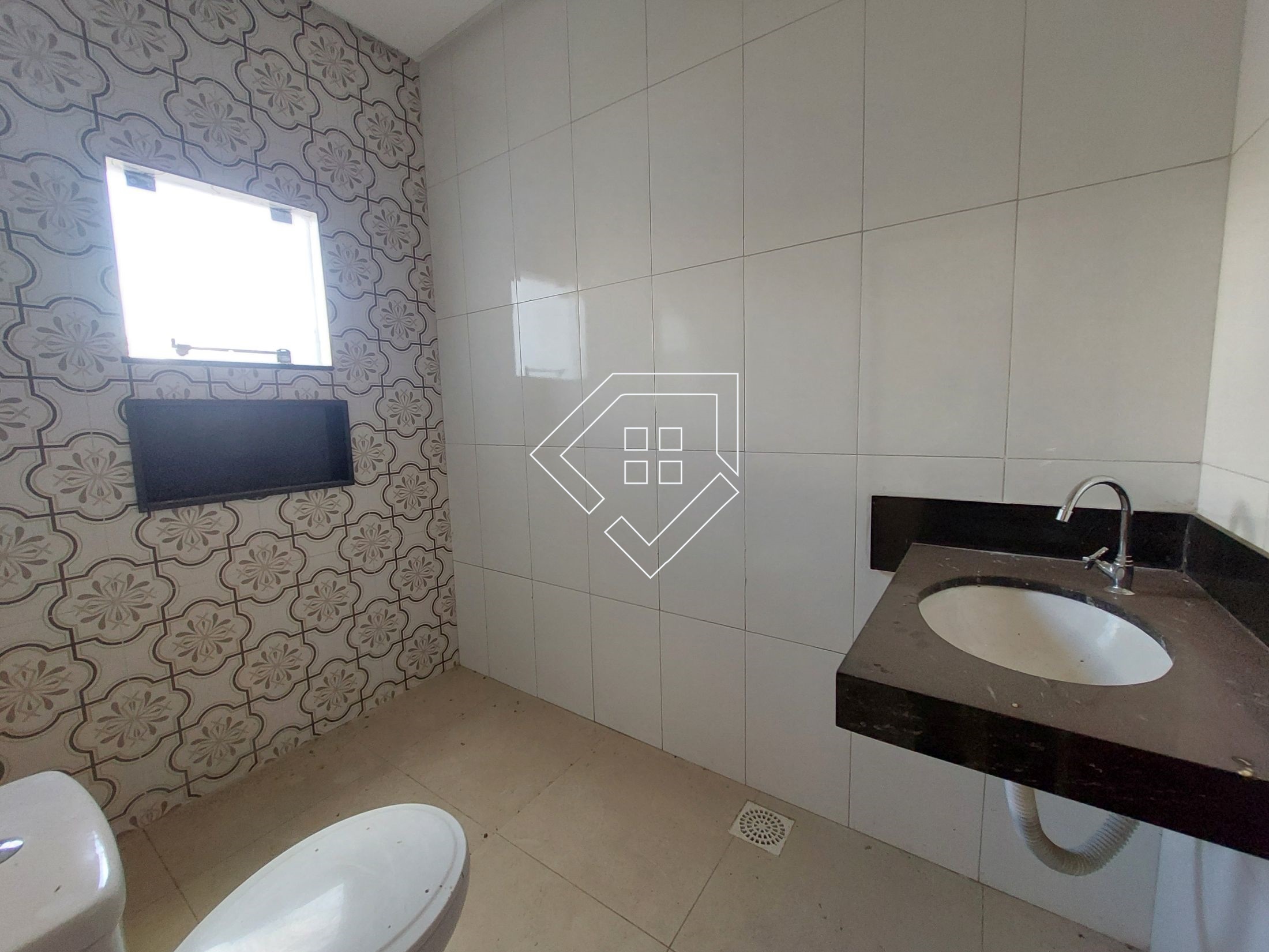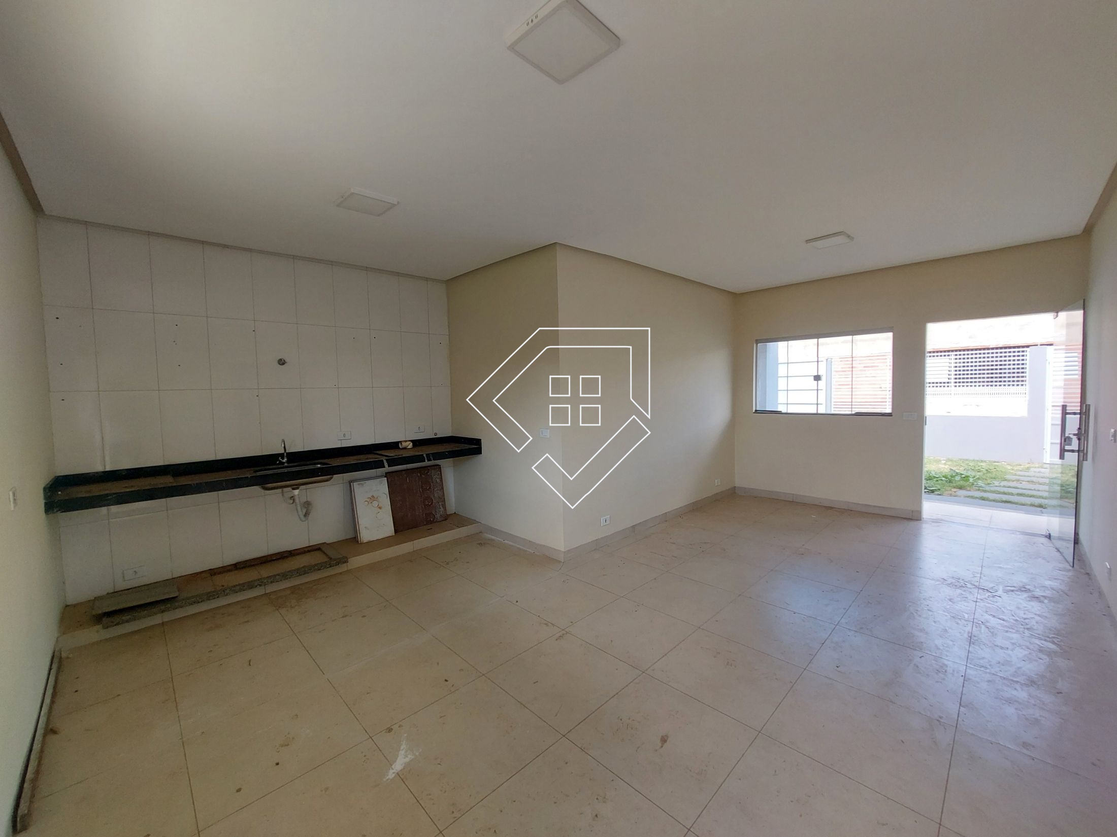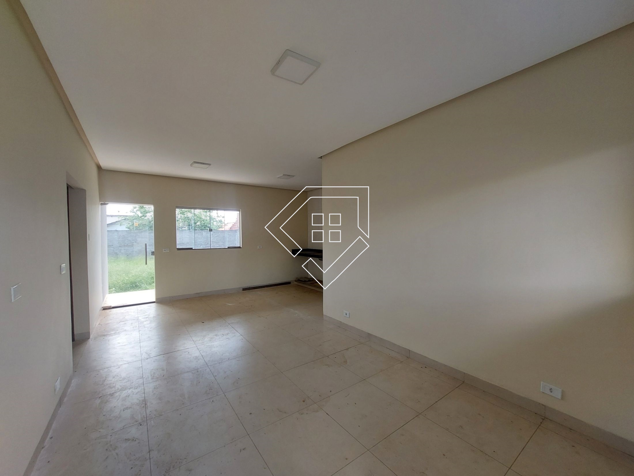 A casa contempla dois quartos sendo um suíte, sala para ambiente de TV e jantar, cozinha com bancada, banheiro social, área de serviço e garagem coberta. Acabamento em porcelanato, teto forrado em gesso, esquadrias em vidro temperado e bancadas em granito. Lote com 300 m² todo murado e com cerca elétrica. Na frente jardim gramado, portões de acesso para carro e pedestre.