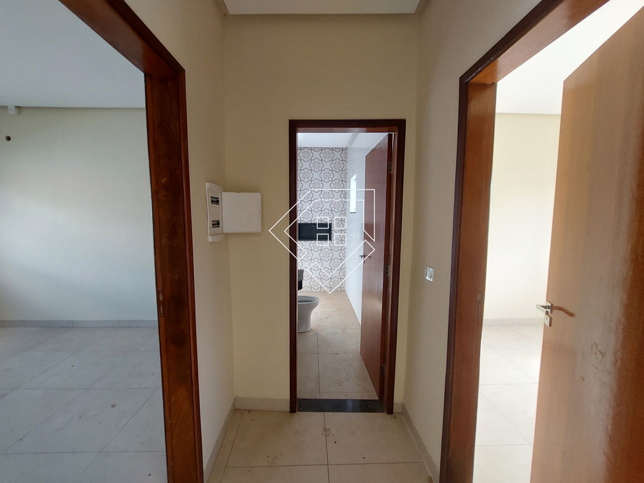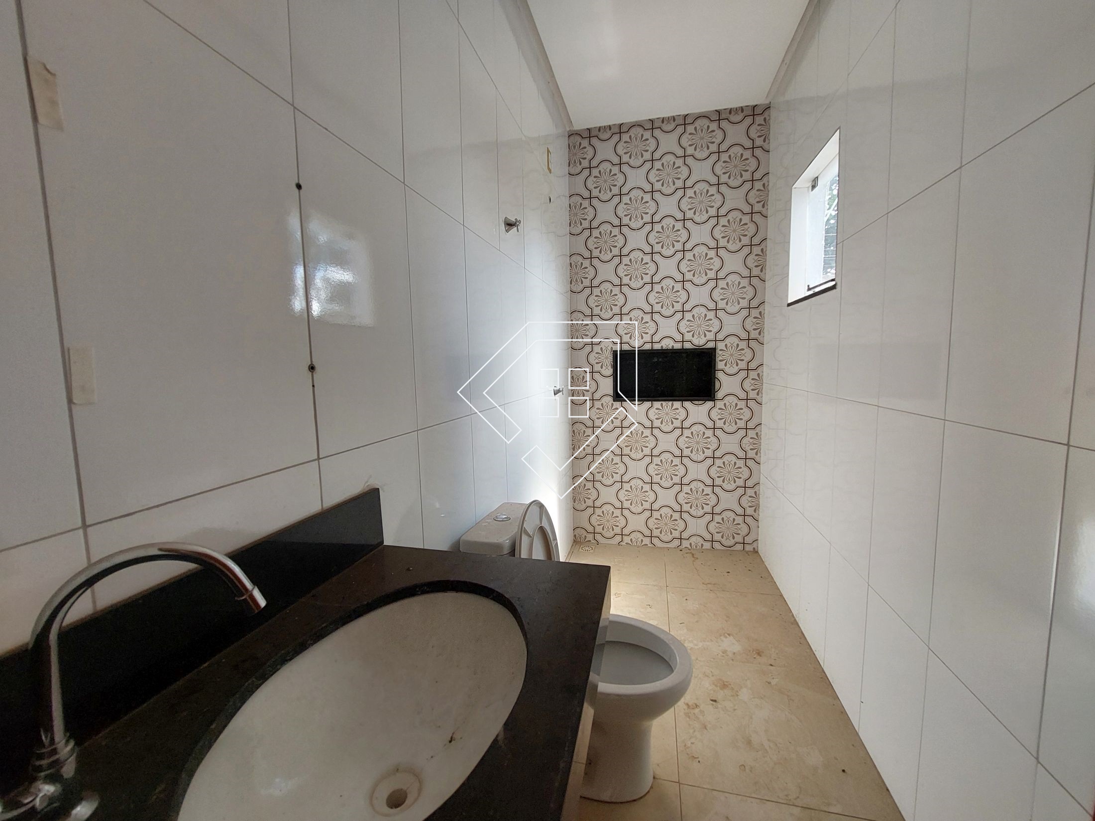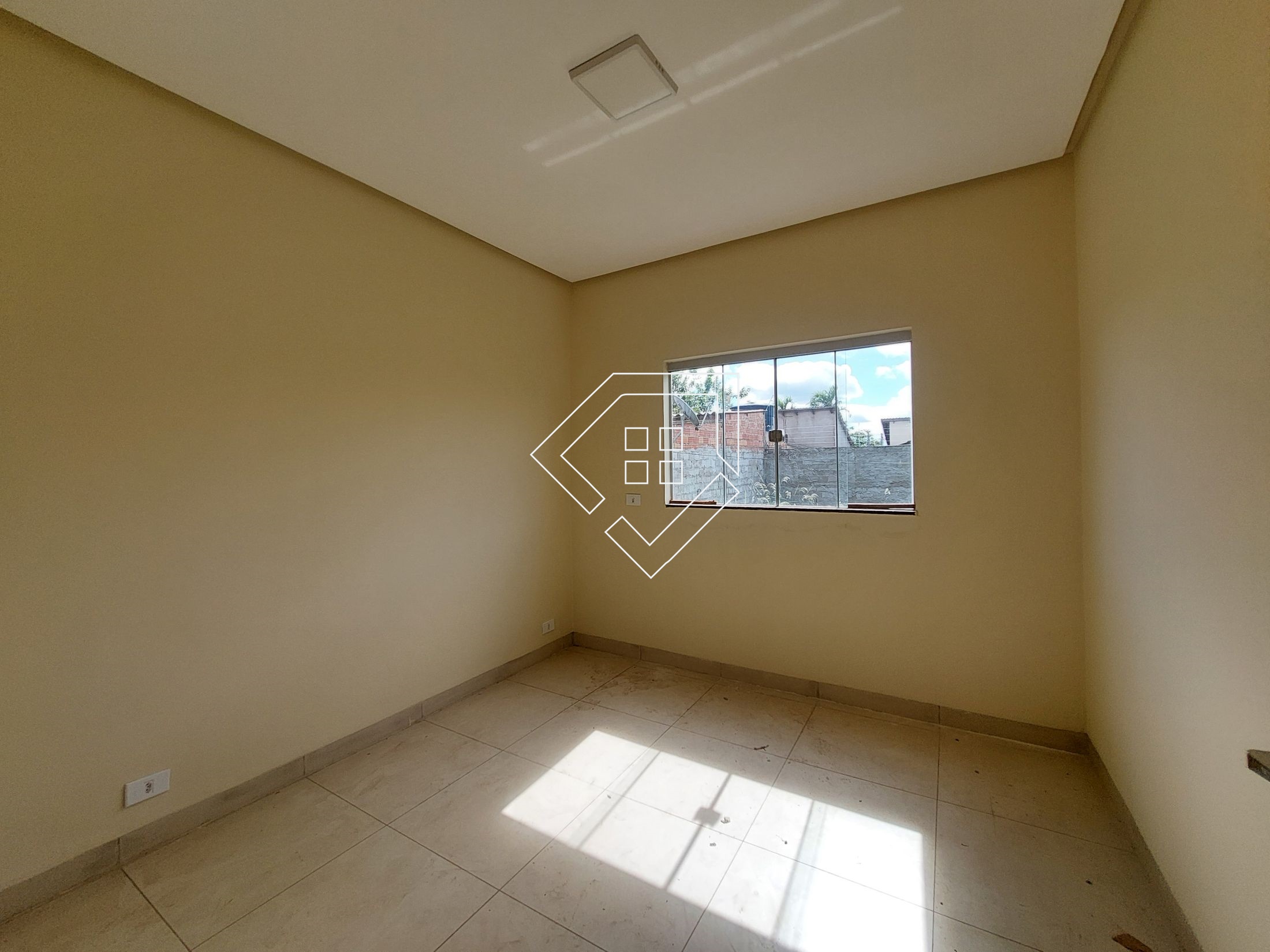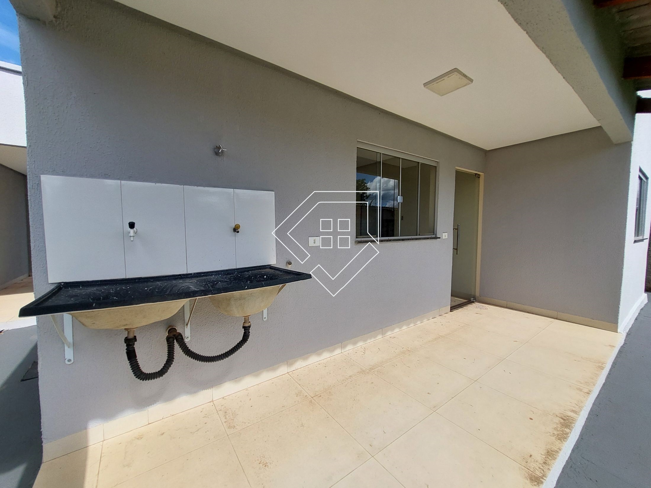 A casa contempla dois quartos sendo um suíte, sala para ambiente de TV e jantar, cozinha com bancada, banheiro social, área de serviço e garagem coberta. Acabamento em porcelanato, teto forrado em gesso, esquadrias em vidro temperado e bancadas em granito. Lote com 300 m² todo murado e com cerca elétrica. Na frente jardim gramado, portões de acesso para carro e pedestre.