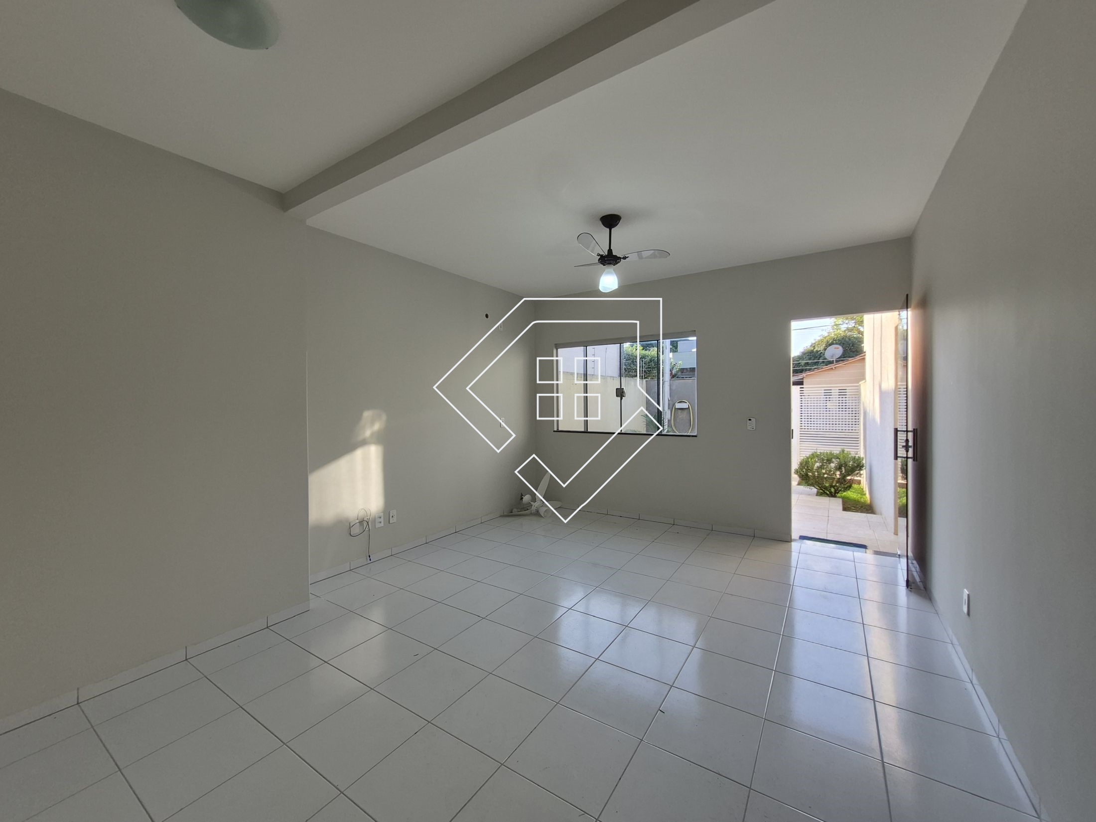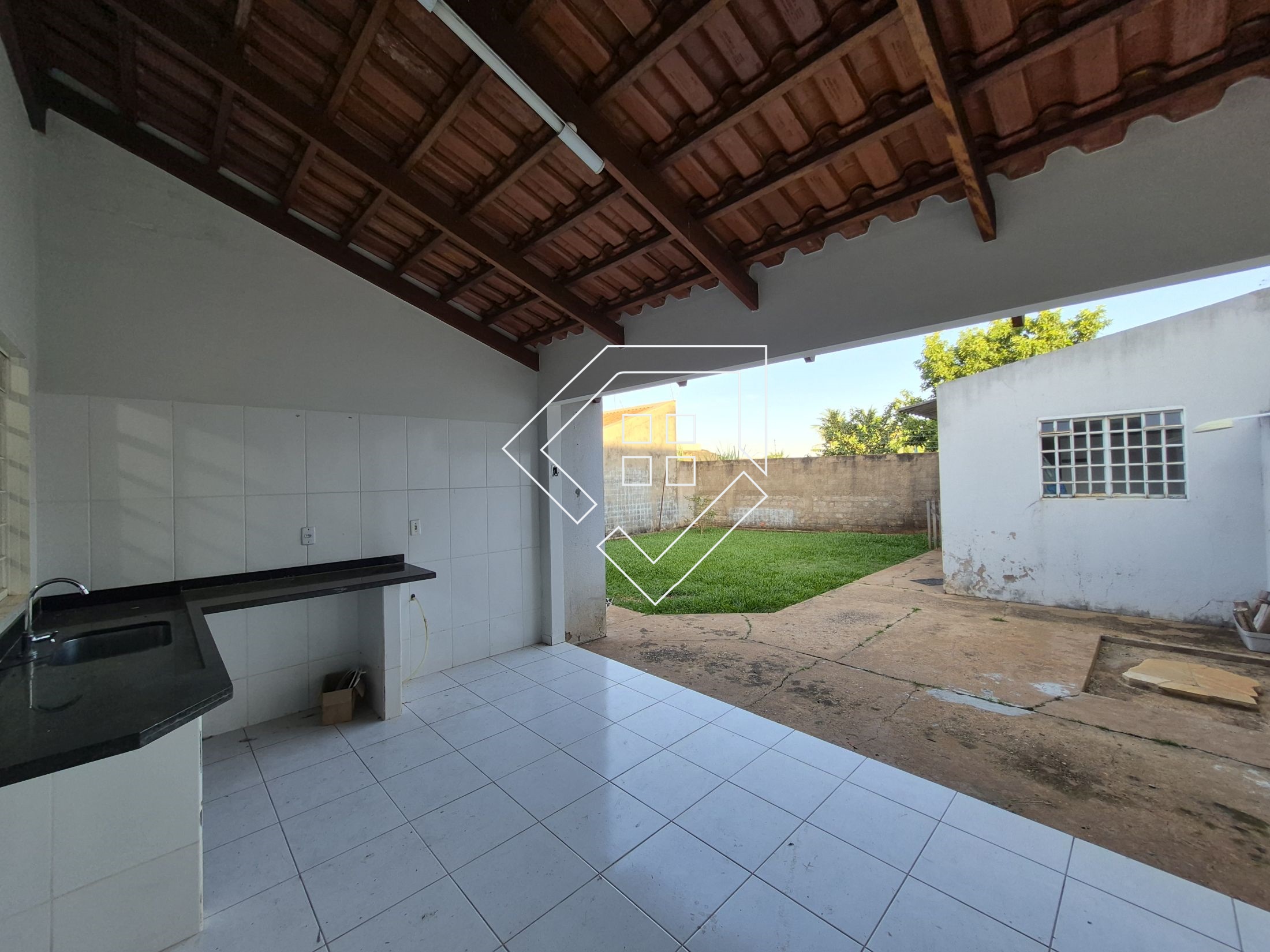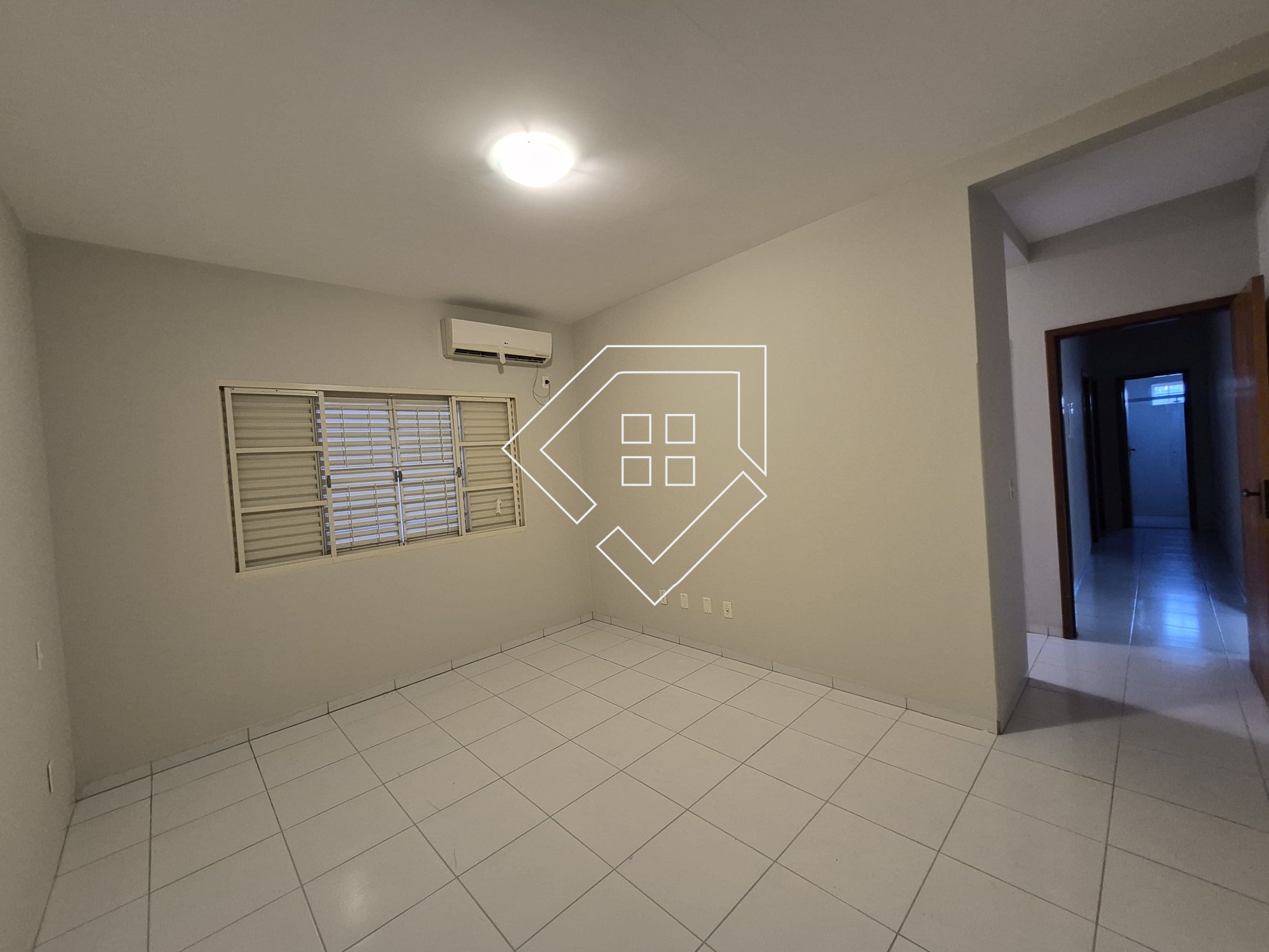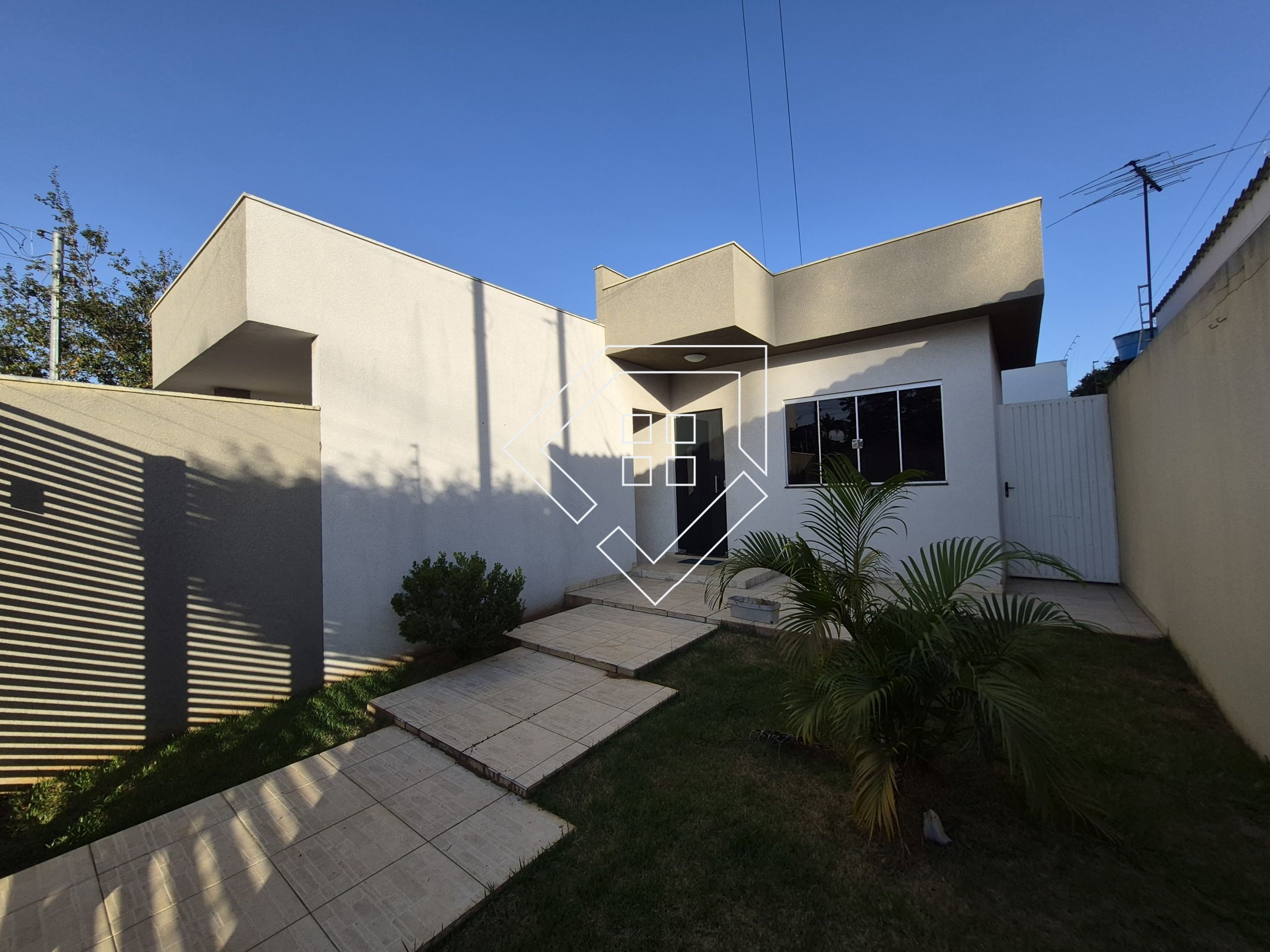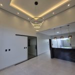Casa para alugar em Mineiros com três quartos sendo um suíte com espaço para closet, corredor com roupeiro, banheiro social, sala ampla, cozinha com armários, varanda gourmet, área de serviço com despensa, quintal gramado e garagem coberta. Teto com laje e piso com cerâmica.