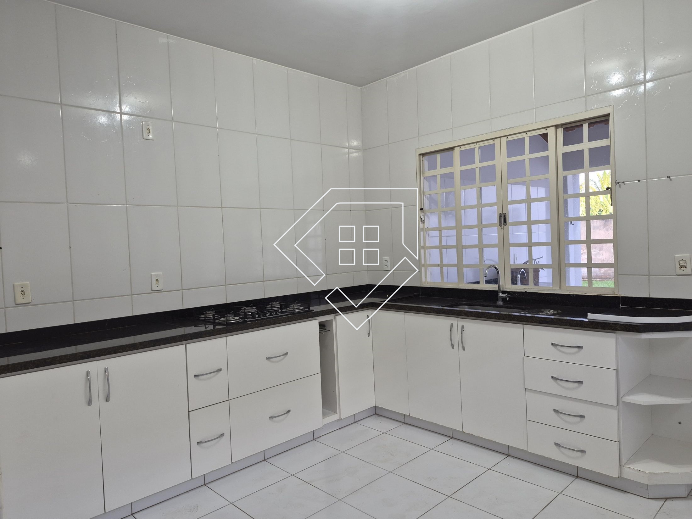 Possui armários na cozinha e no corredor, banheiros com armários, boxe e espelho. Conta com portão automatizado, cerca elétrica e interfone.
