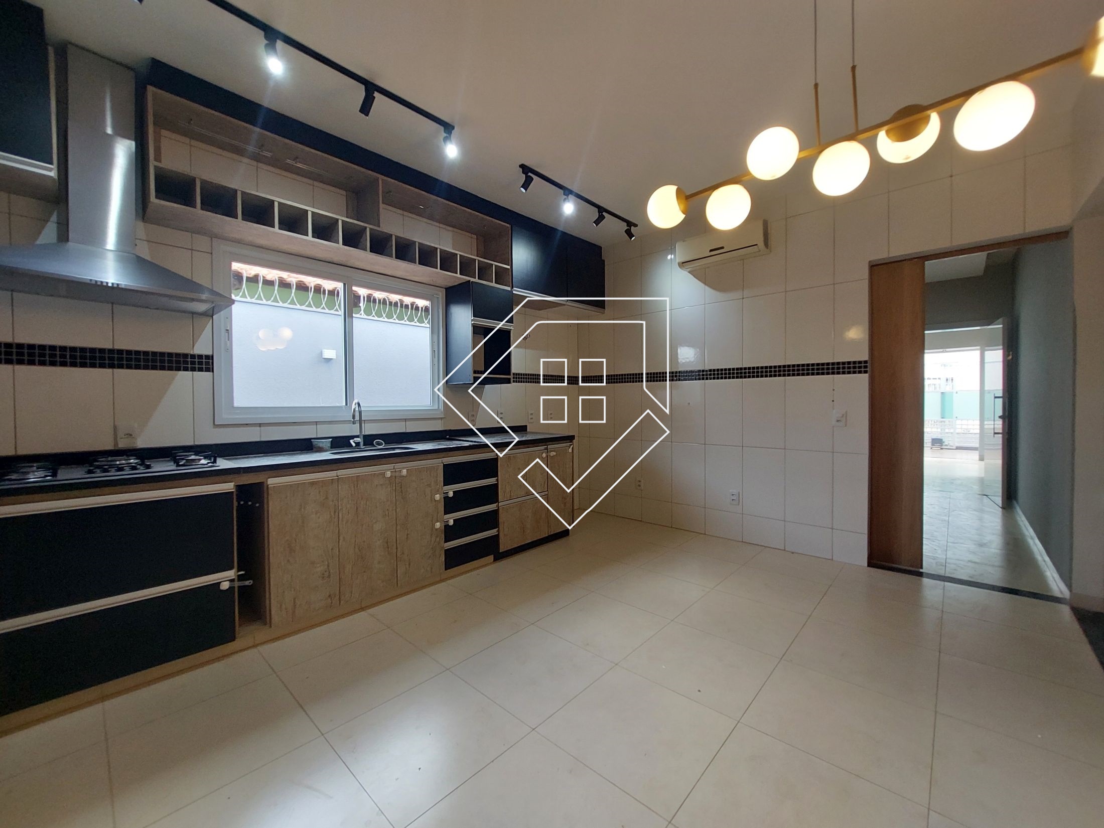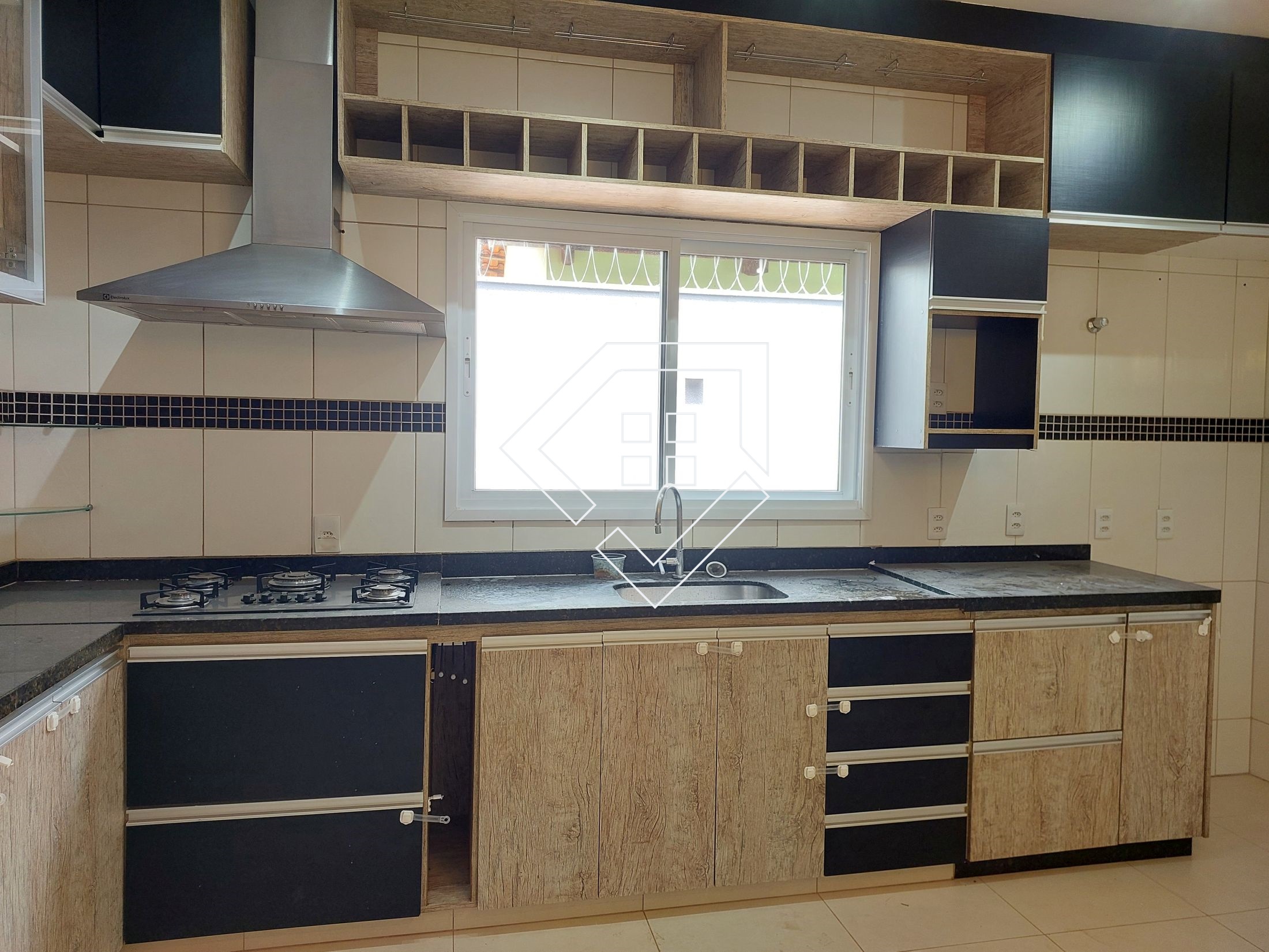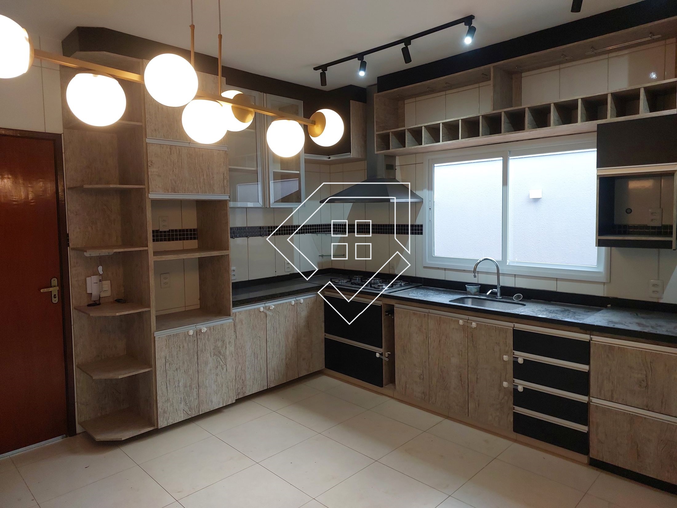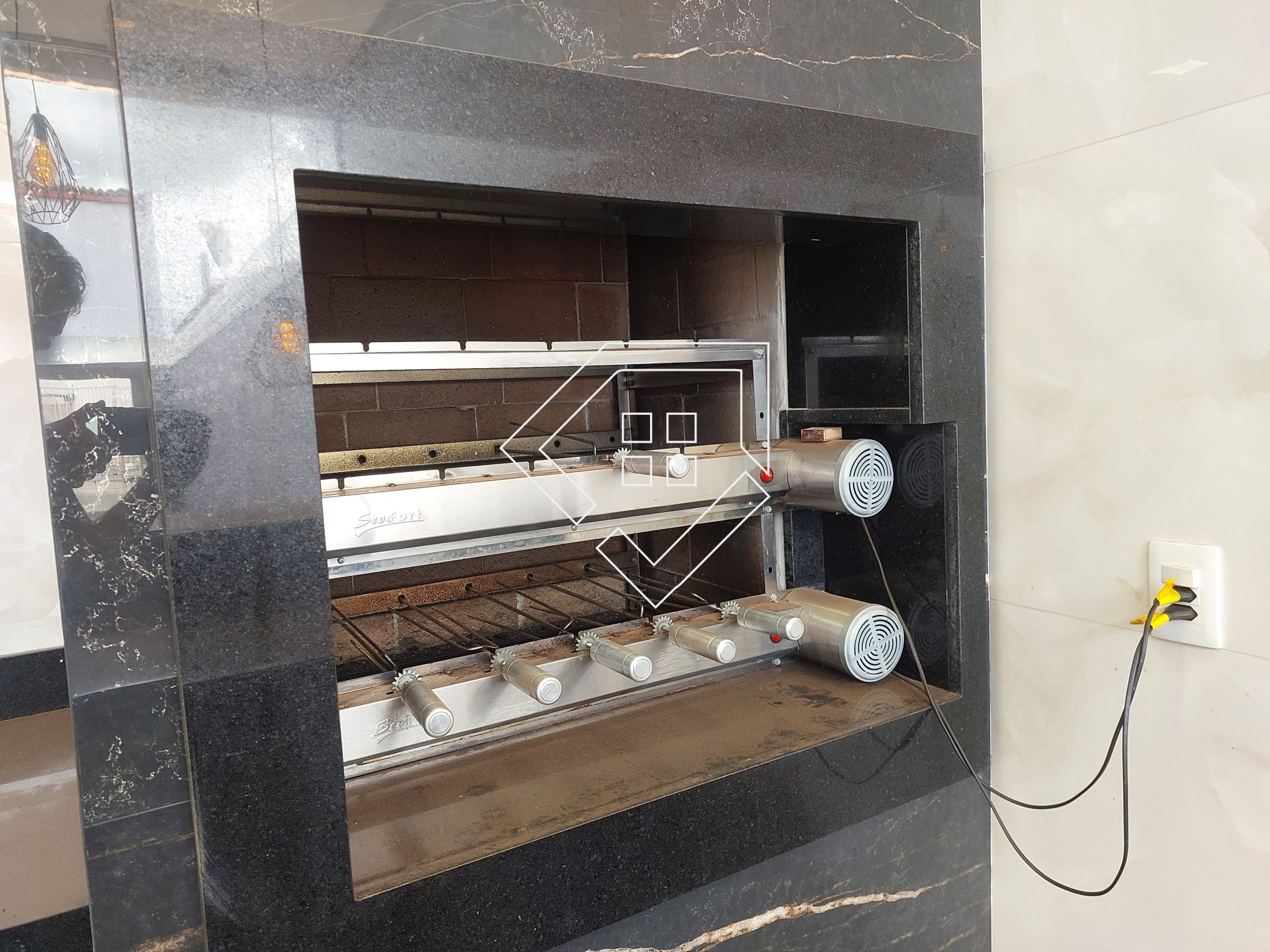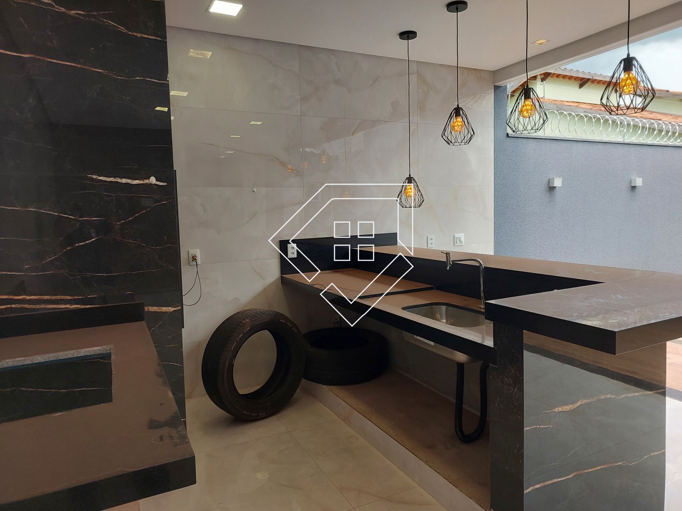 Diferenciais: cozinha completa com armários, coifa, fogão e ar condicionado, sala com painel ripado e rack, banheiros com boxes, armários e espelho, suíte com cabeceira almofadada, guarda roupas com espelho e luminárias de leitura, os quartos possuem guarda roupas planejados e com espelho em um desses e armário na área de serviço. Churrasqueira de alvenaria composta por kit grill giratório duplo de 5 espetos, Iluminação decorativa com lustres pendentes, luminárias dicroicas, arandelas e painéis de LED. Parte de segurança é composta por portão eletrônico, interfone e cerca elétrica. Jardim com gramado e iluminado.