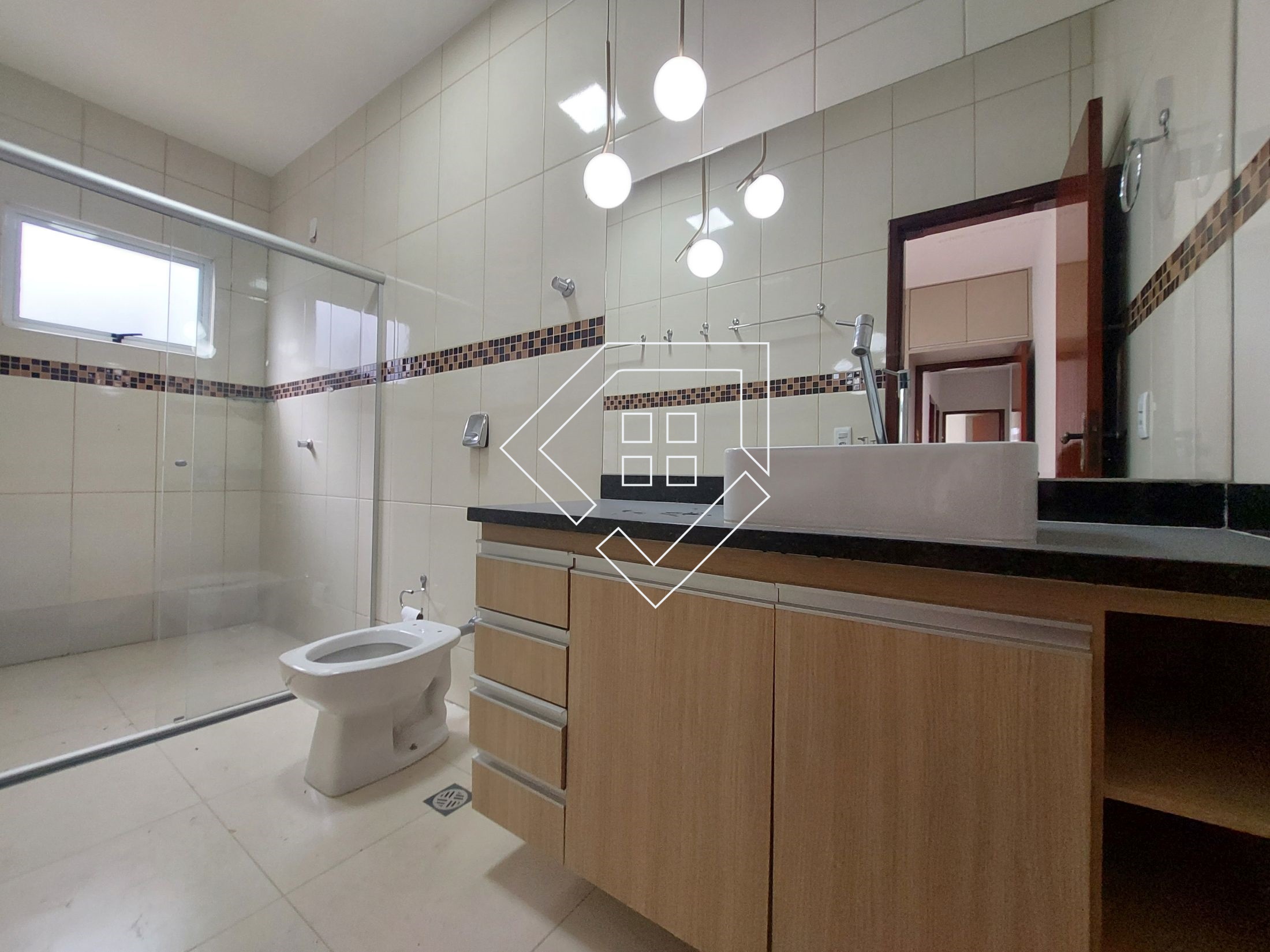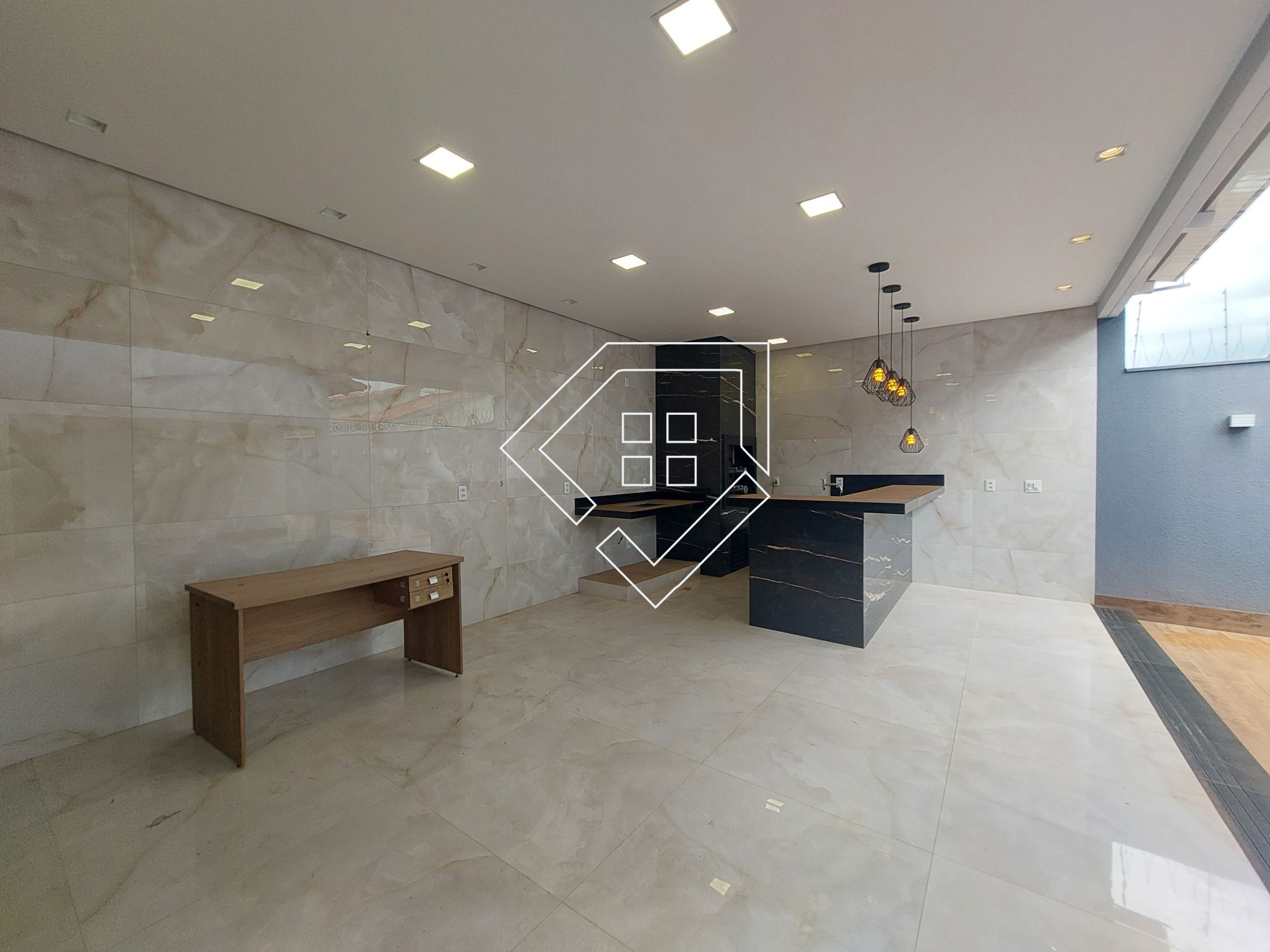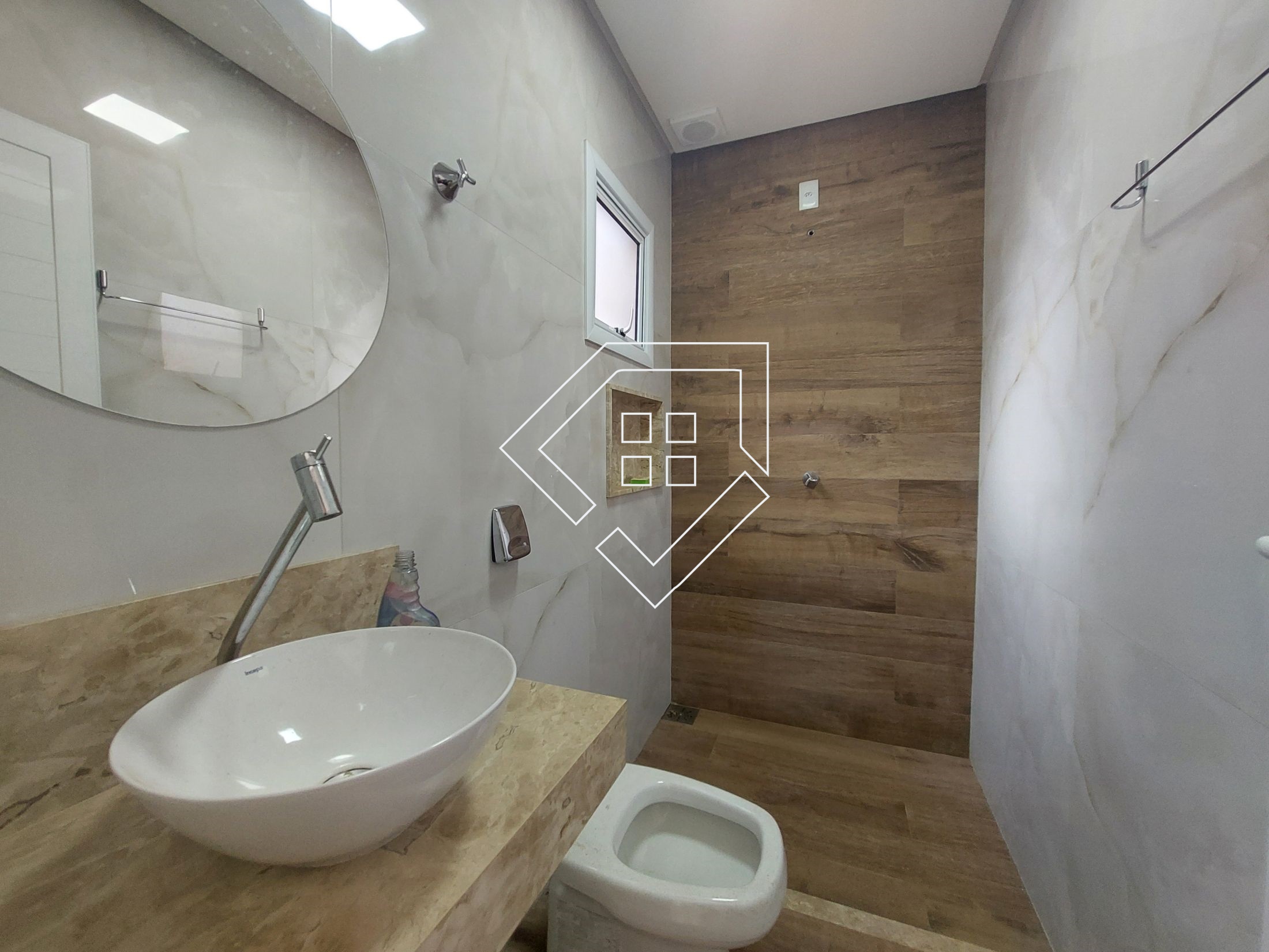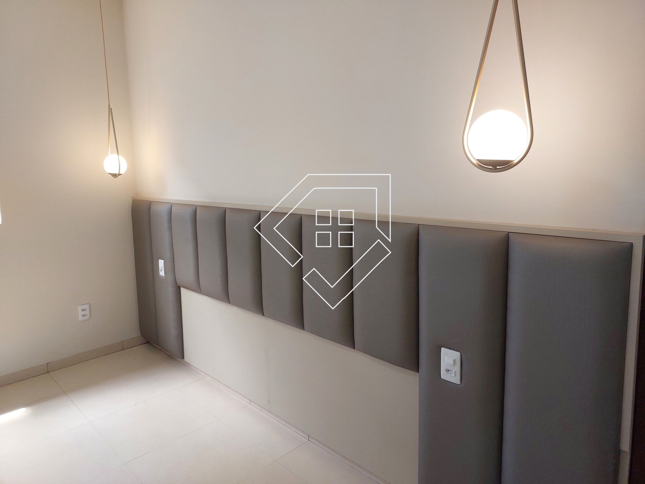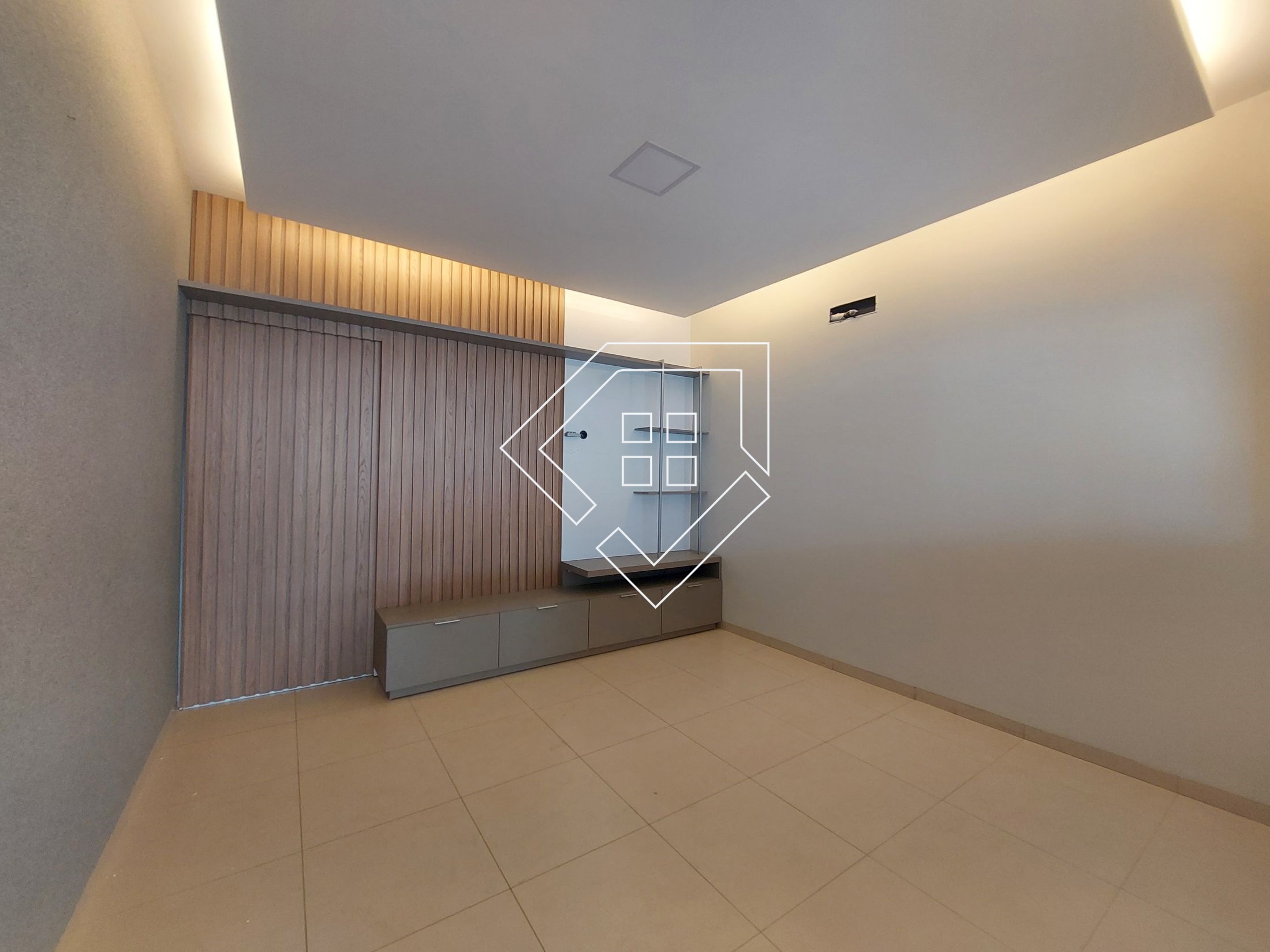 Diferenciais: cozinha completa com armários, coifa, fogão e ar condicionado, sala com painel ripado e rack, banheiros com boxes, armários e espelho, suíte com cabeceira almofadada, guarda roupas com espelho e luminárias de leitura, os quartos possuem guarda roupas planejados e com espelho em um desses e armário na área de serviço. Churrasqueira de alvenaria composta por kit grill giratório duplo de 5 espetos, Iluminação decorativa com lustres pendentes, luminárias dicroicas, arandelas e painéis de LED. Parte de segurança é composta por portão eletrônico, interfone e cerca elétrica. Jardim com gramado e iluminado.