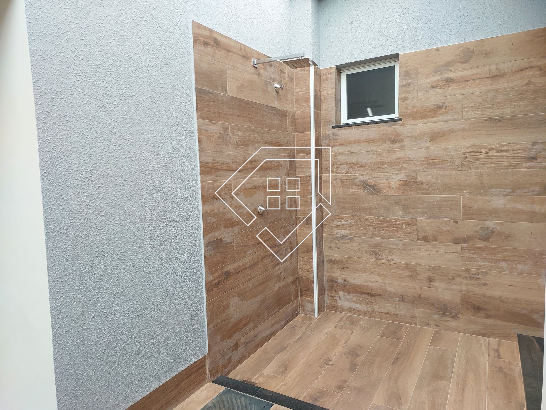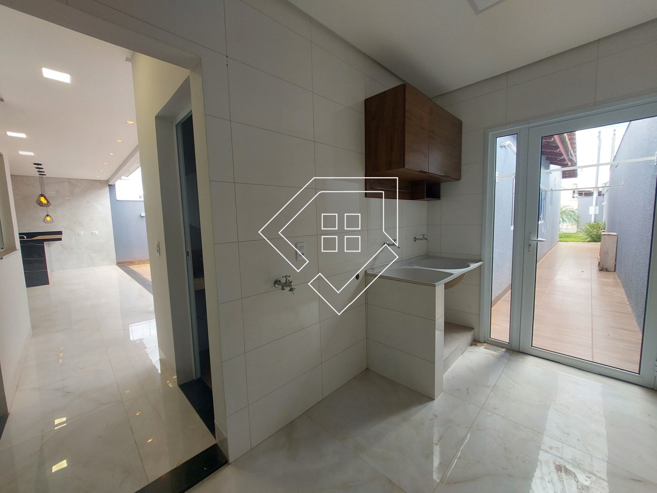 A casa possui três quartos sendo um suíte, sala, cozinha conjugada com sala de jantar, banheiro social, garagem coberta, edícula com cozinha gourmet e churrasqueira, varanda, um quarto de visitas, um banheiro de visitas, despensa, área de serviço e área de banho com ducha refrescante.