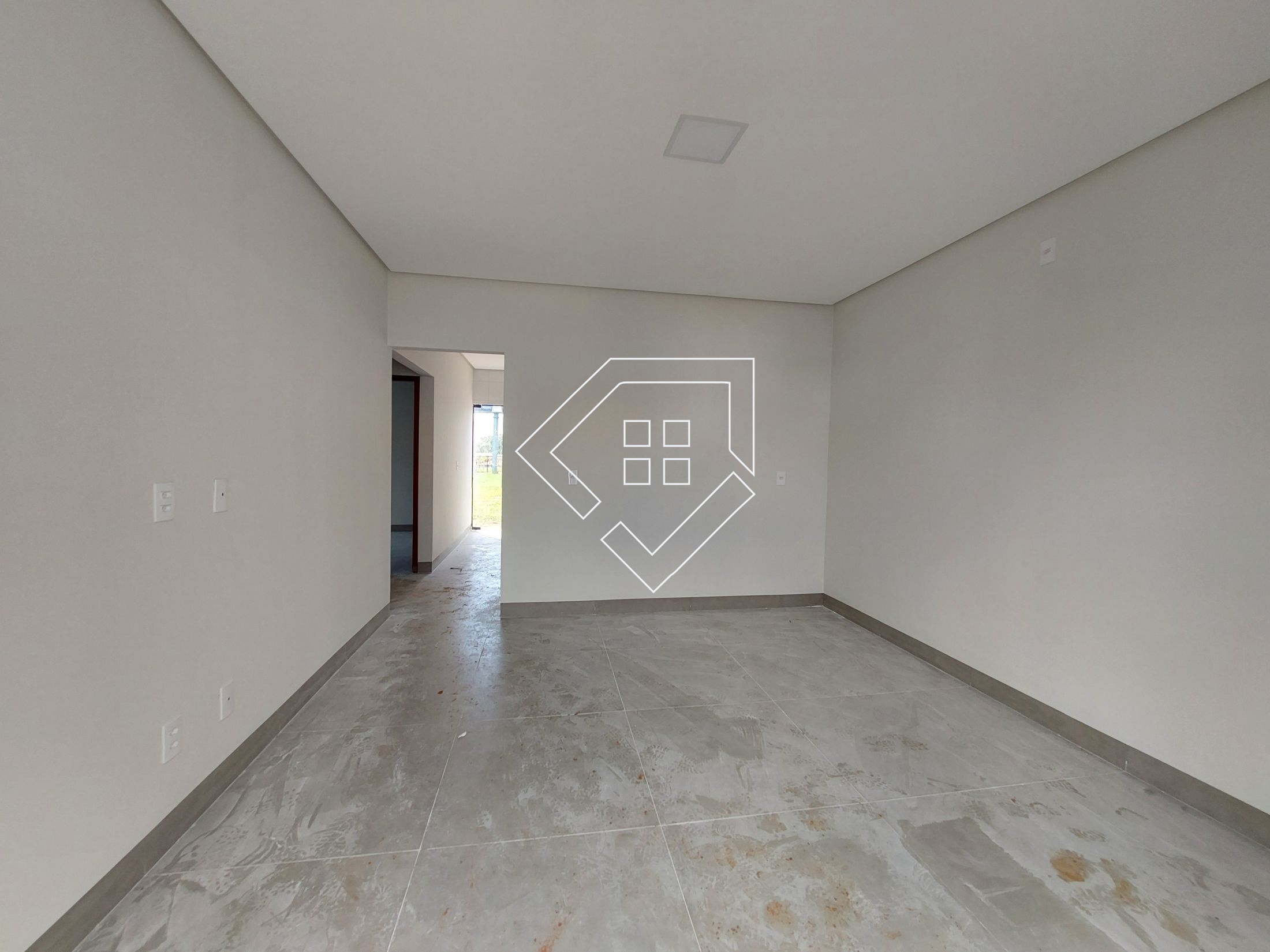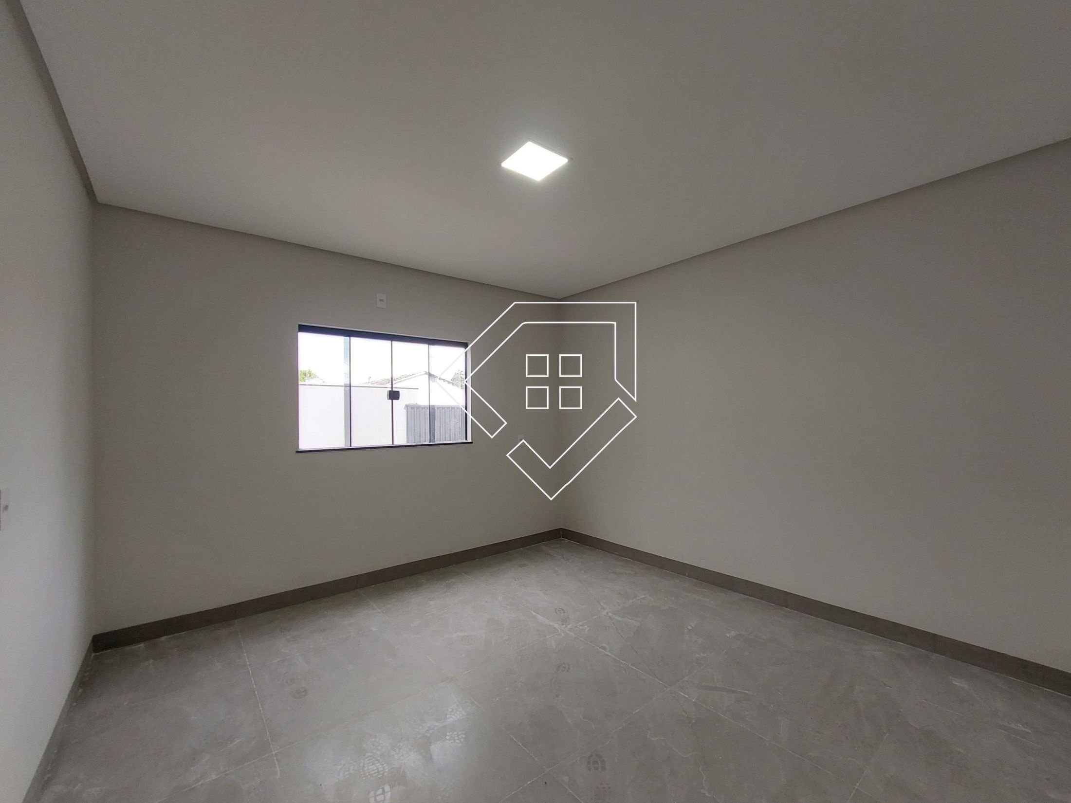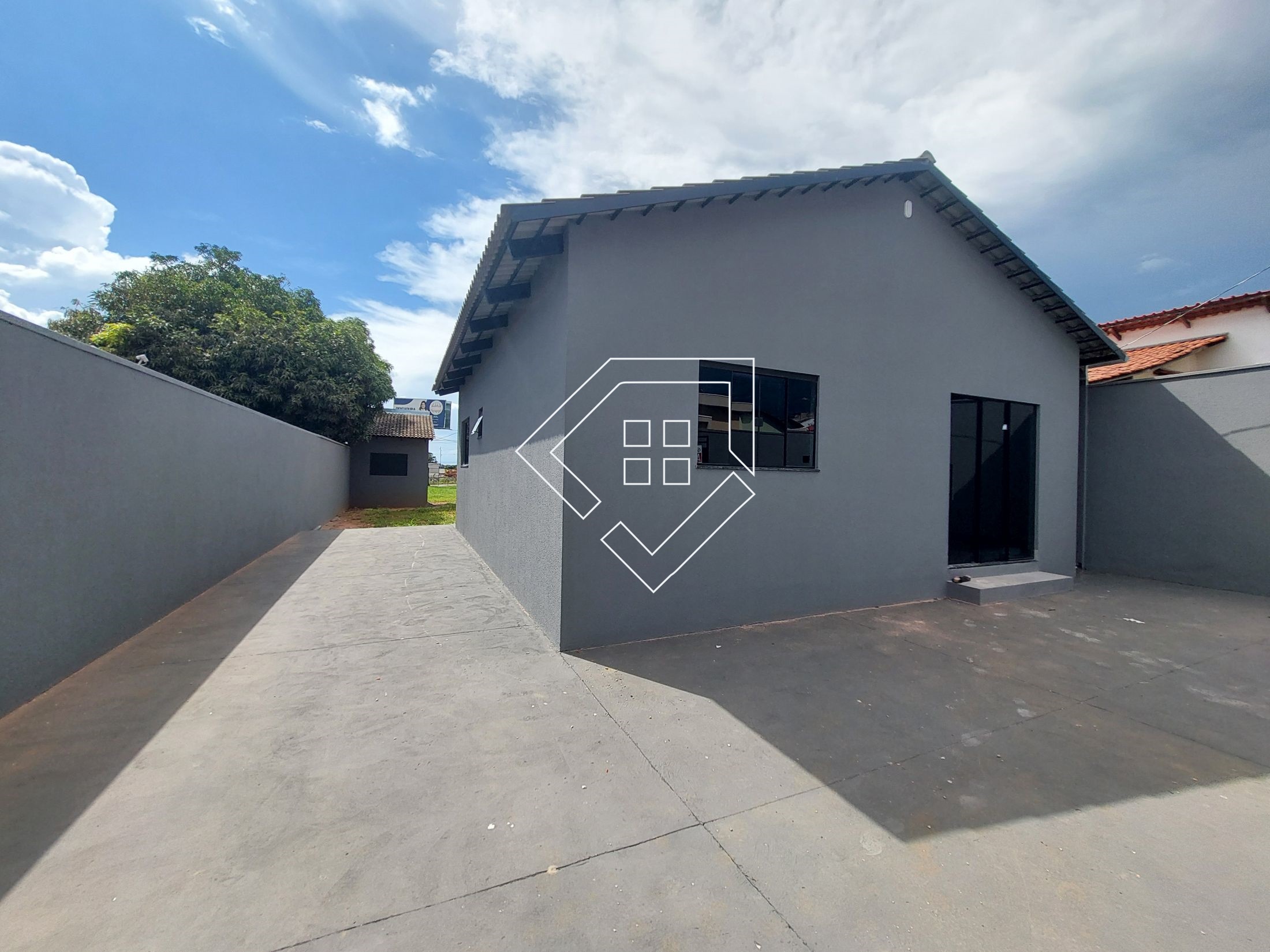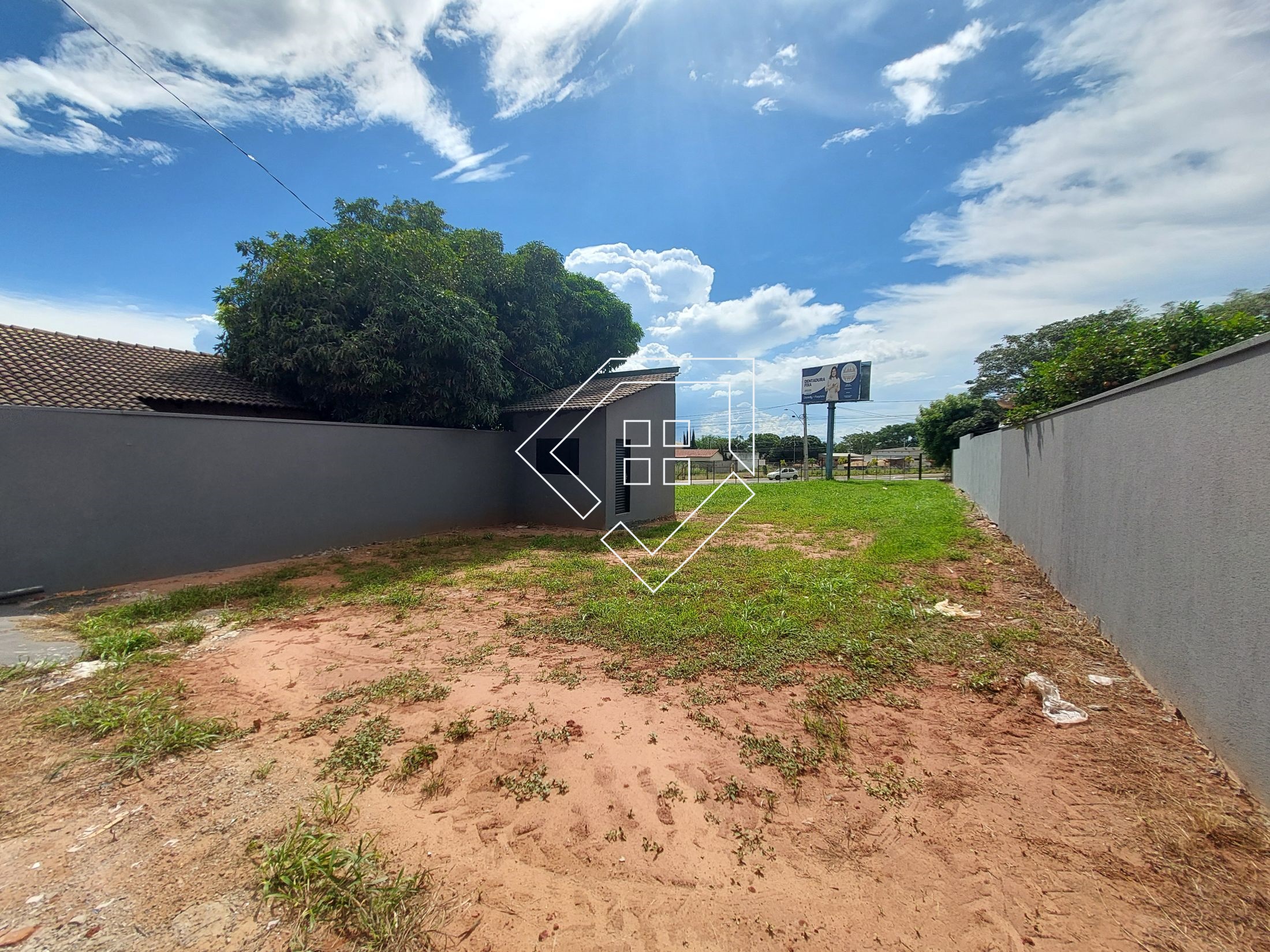 Conta com uma casa com sala, dois quartos, cozinha, um banheiro e abrigo para carro, aos fundo um cômodo de depósito e amplo quintal com acesso para avenida com uma livre de 723 m² cercada com alambrado e portão de acesso. A casa possui aproximadamente 60 m² e área total do imóvel é 1083 m².