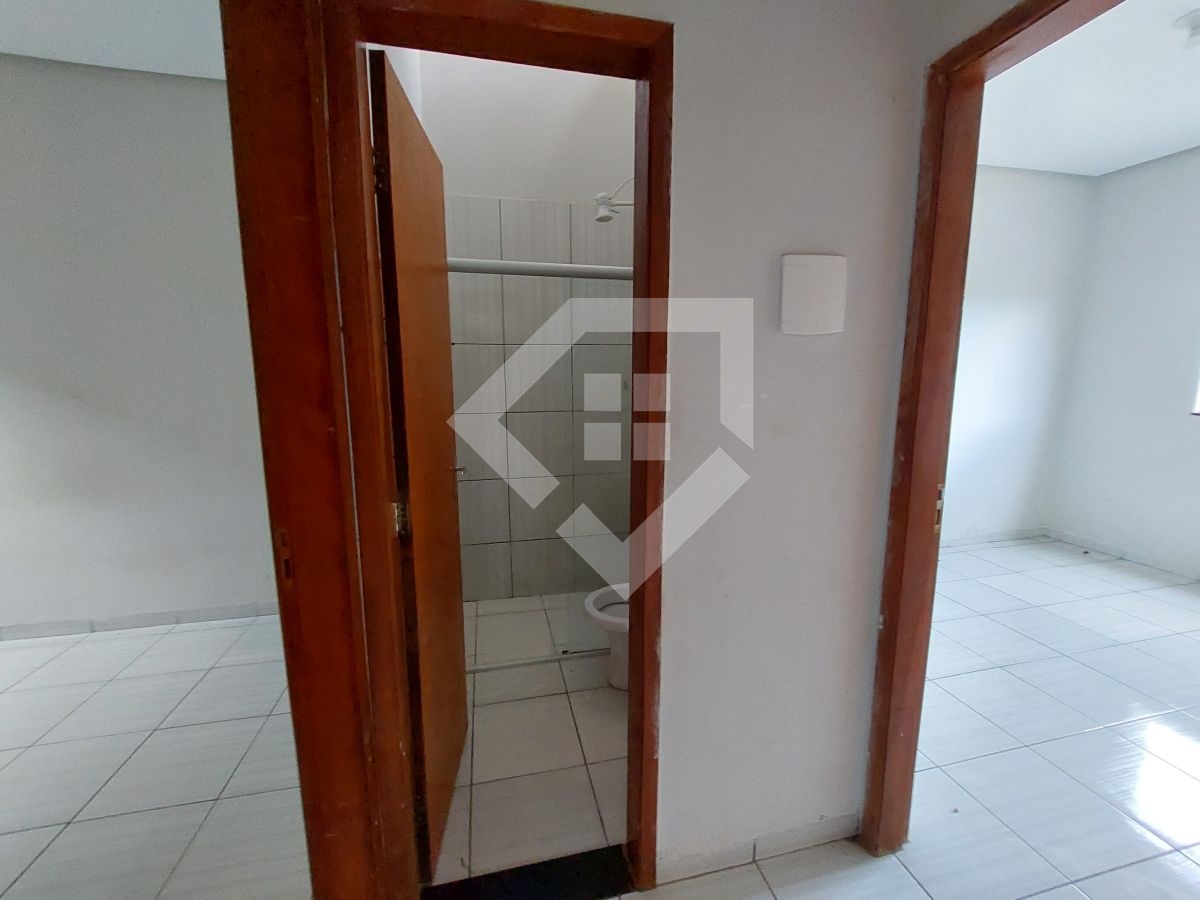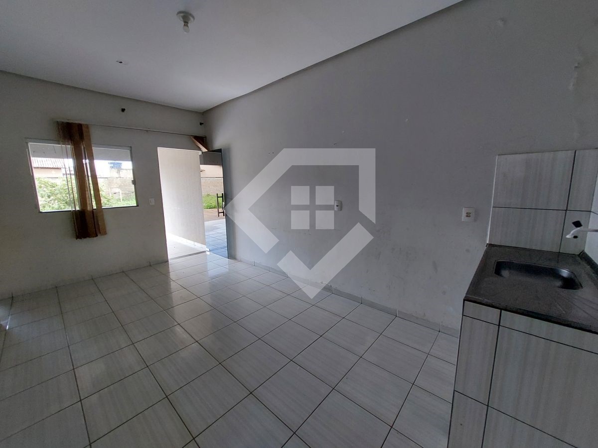 kit net para alugar em Mineiros GO com dois quartos, sala conjugada com cozinha, banheiros social, área de serviço e garagem coberta. Piso com cerâmica e teto forrado. Localizada no bairro Alvina Paniago.