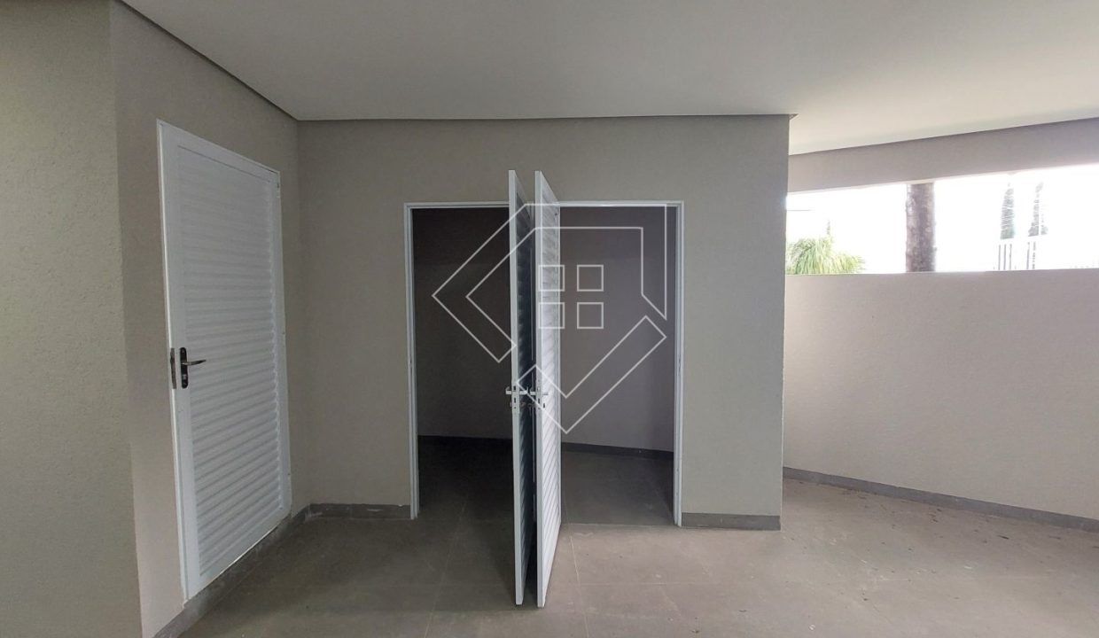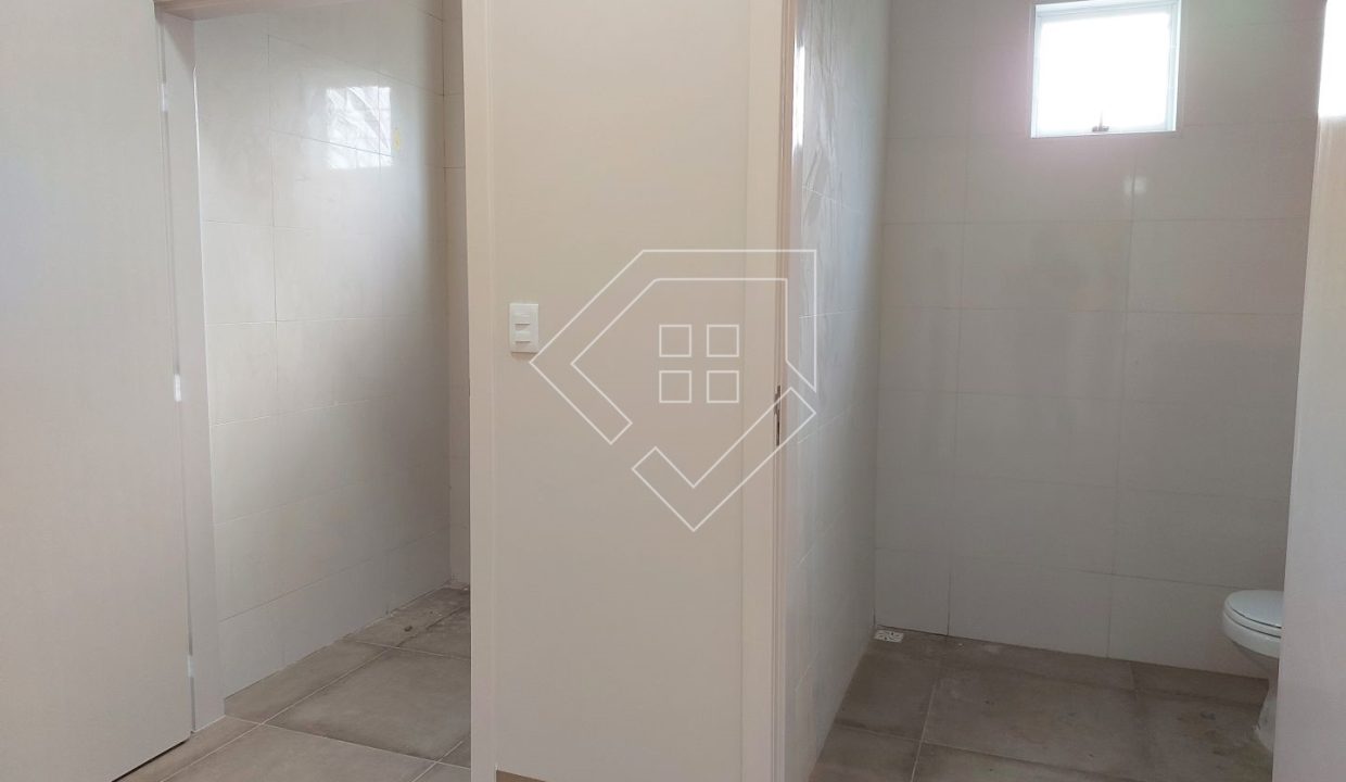 Divisão interna: Uma sala para recepção com cantinho do café e dois banheiros sendo compatíveis para PNE, mais uma ampla sala com cabine de atendimento com balcão, armário e interfone, dois banheiros internos, cinco salas privativas com móveis planejados e lavatório, sendo uma com banheiro privativo, cantina com armários, cômodo DML, dois cômodos para depósito e uma garagem.