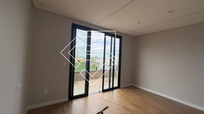 Piso superior com uma suite com sacada, hall de circulação com espaço para home office, dois quartos, banheiro social.